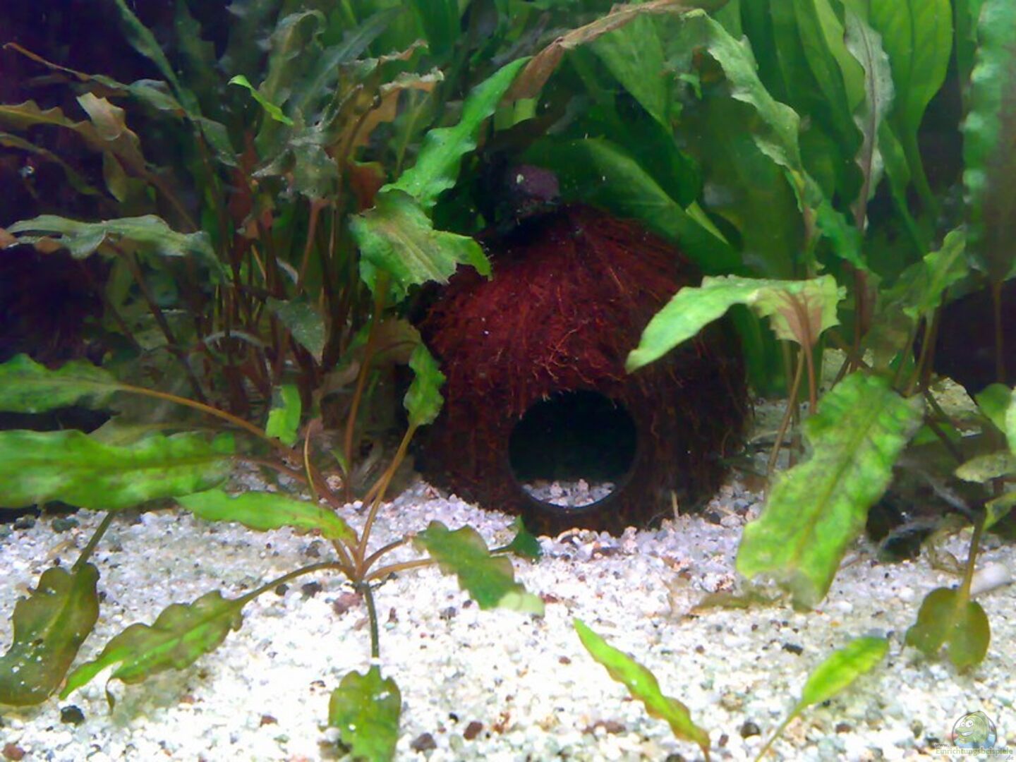 12.11.08: 4 Echinodorus bleheri und 2 Vallisneria gigantea eingepflanzt + 2 Kokosnusshöhlen reingesetzt