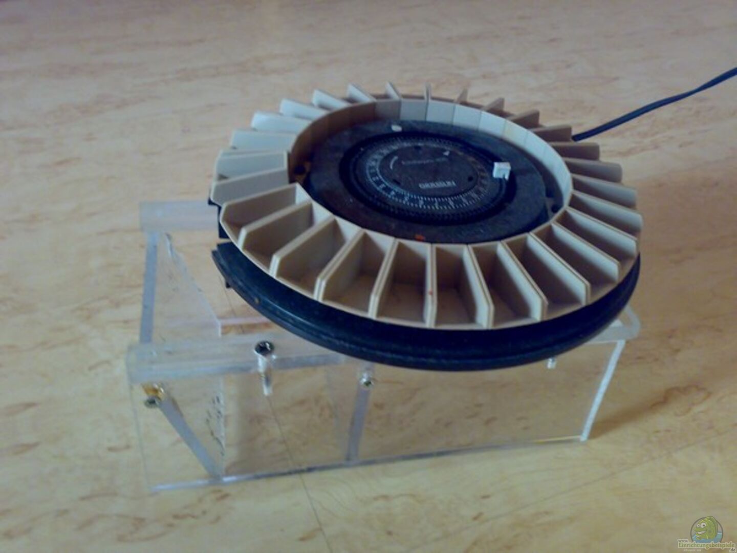 -HMF mit 650l/h E-Heim Aquaball in der rechten Ecke (Nachträglicher Einbau: Plexiglasscheibe mit Hei??luftföhn auf rechten Winkel gebogen und Kabelschächte mit Aquariensilikon angeklebt)
