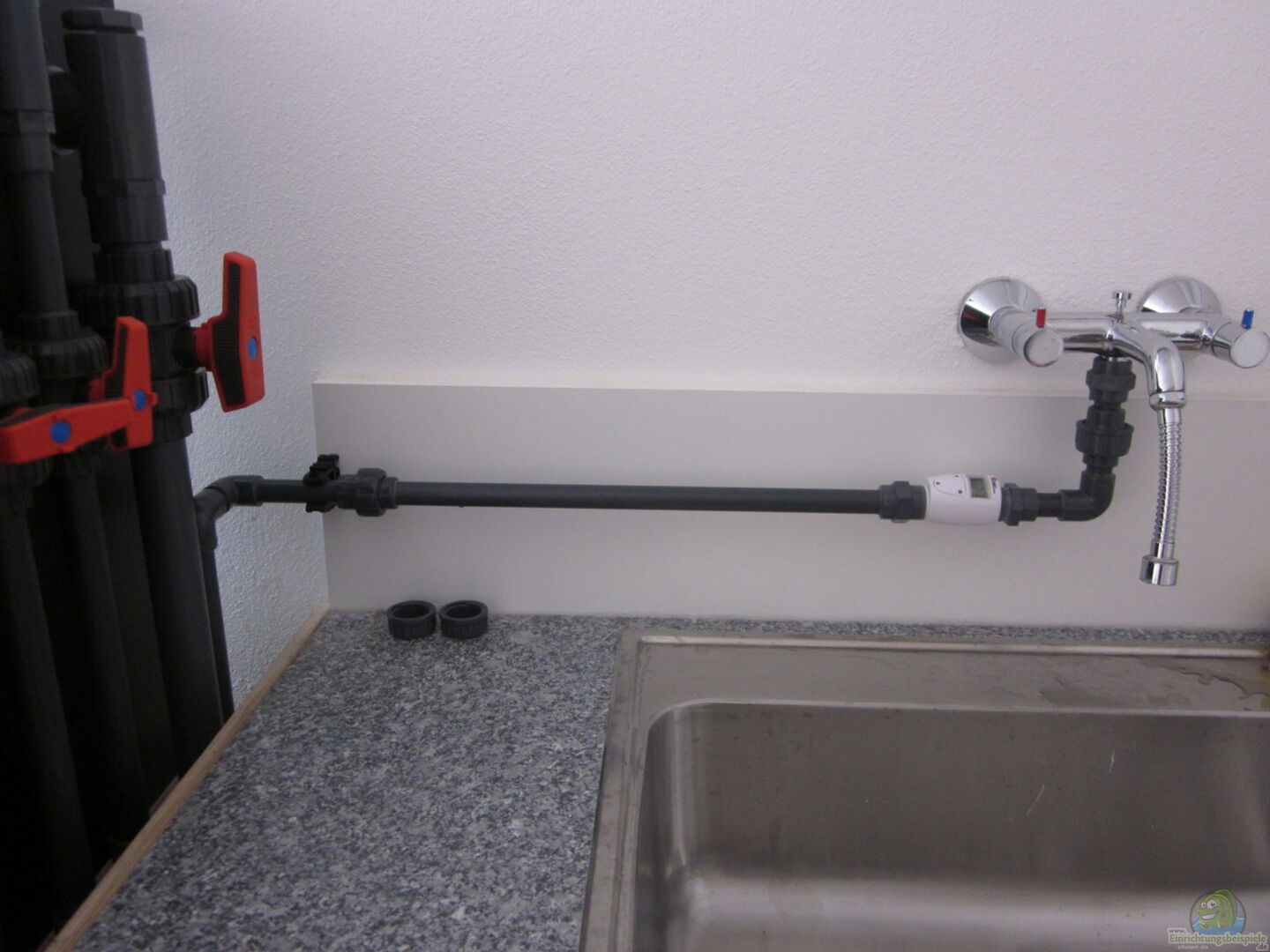 Die Steuerung misst den Ph-Wert und Temperatur. Die Messwerte haben Einfluss auf CO2 Zugabe und Wasserwechsel. Da das Frischwasser über einen Teilentsalzer läuft und bei uns mit das Wasser mit rund 6 Grad aus dem Hahn kommt, wird nur solange Frischwasser zugeführt solange die Temperatur und ph-Wert stimmen. Sollte es im Sommer mal hei?? werden, wird ebenfalls mit Frischwasser gekühlt.