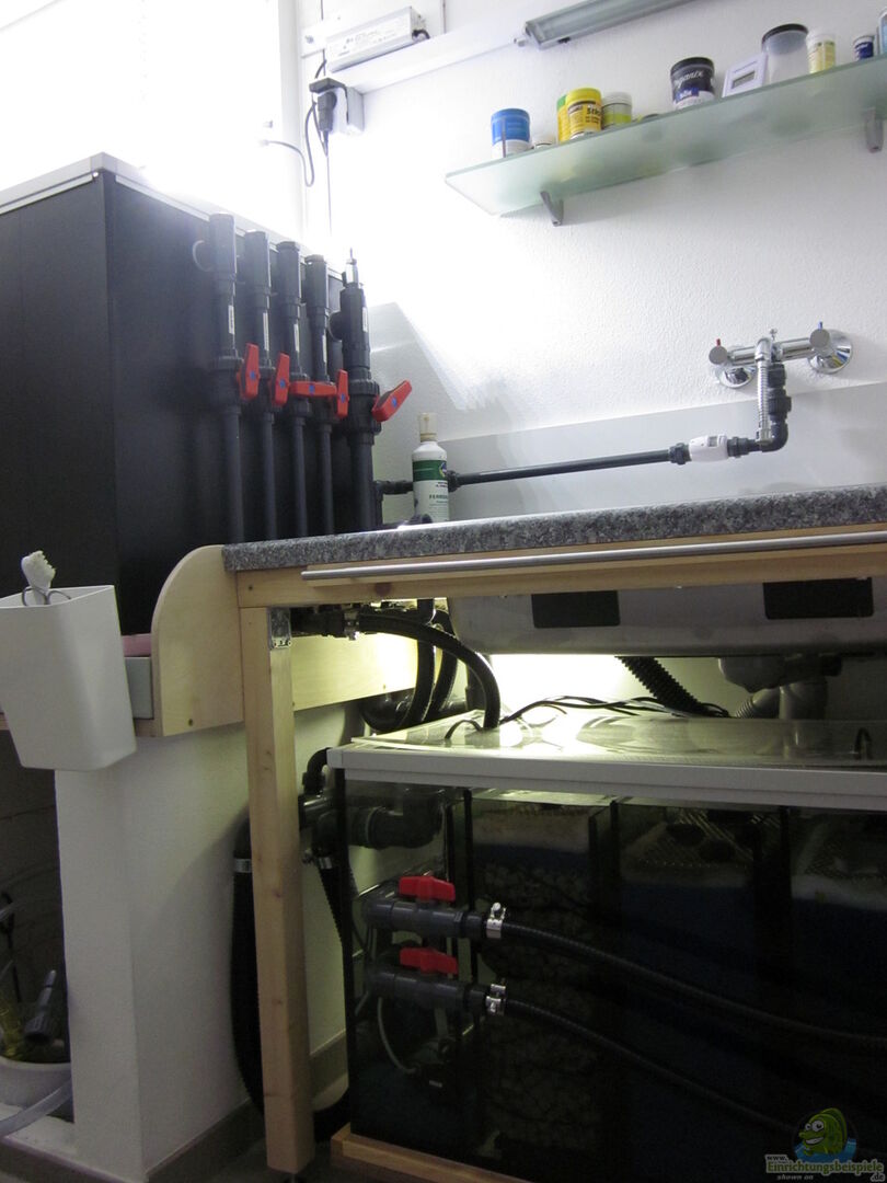 Wie schon erwähnt, betreibe ich einen Teilentsalzer (10Liter) und eine Nitratsäule. Der Teilentsalzer drückt die Karbonhärte von kh14 auf kh6. Die Nitratsäule wird noch über eine extra Pumpe gesteuert und läuft nur Nachts.