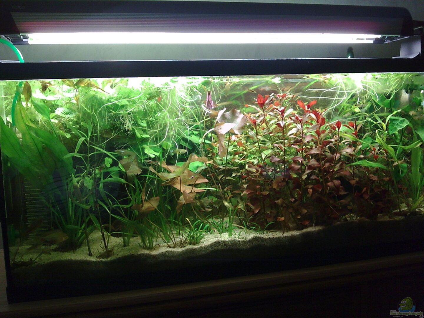 Schön bepflanztes Becken, mit recht guter Beleuchtung, mal sehen wie die Pflanzen ohne Bodengrundünger, und Flüssigdünger damit zurecht kommen, oder benutzt du welchen?Denke du kennst dein KH damit du dein Co 2 einstellen kannst.Becken kann schlecht bewertet werden weil einige Angaben fehlen, wie zb. zum Besatz, wie viele von welcher Art pflegst du gerade?.