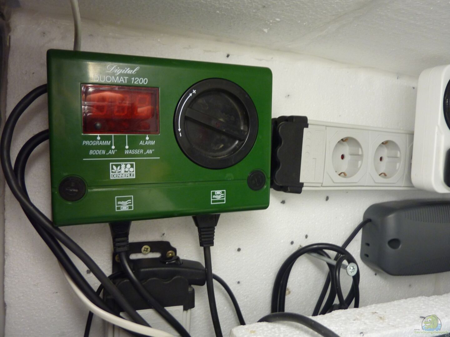 Als weitere Technik ist lediglich eine digitale Heizanlage angeschlossen. Diese fungiert im Moment allerdings nur als Thermometer, da durch die gute Dämmung des Unterschranks und der unter Wasser laufenden Rückförderpumpe auch ohne zusätzliches Heizen eine Temperatur von 24-25° (Winter) bzw. 27-28° (Sommer) erreicht wird.