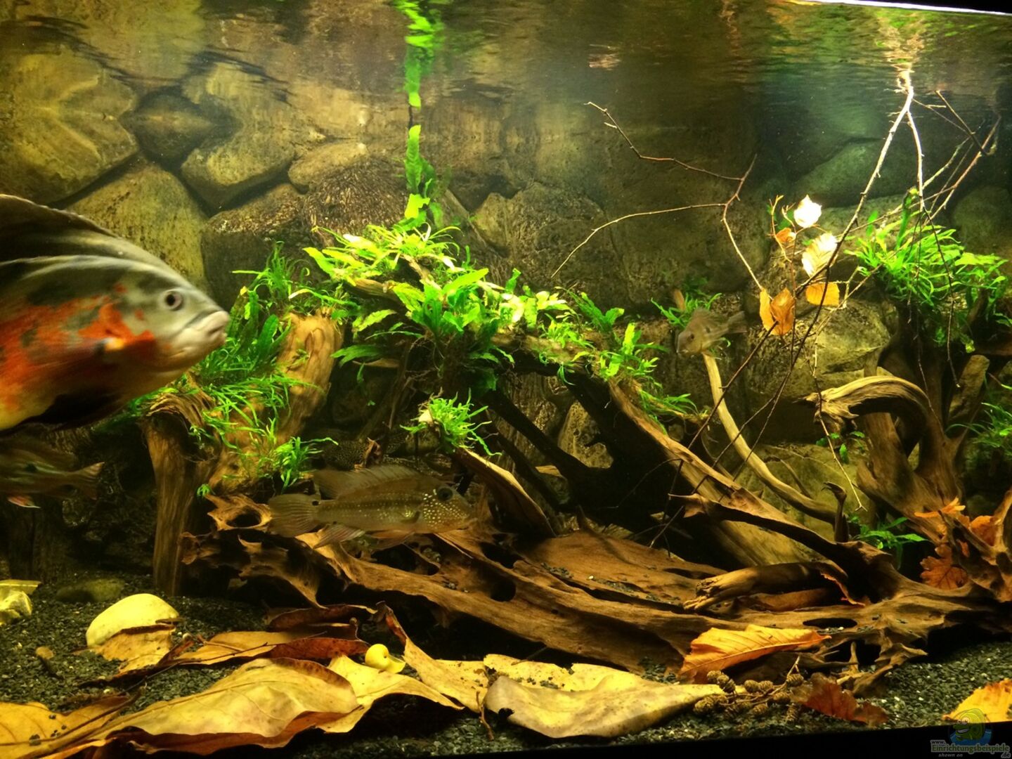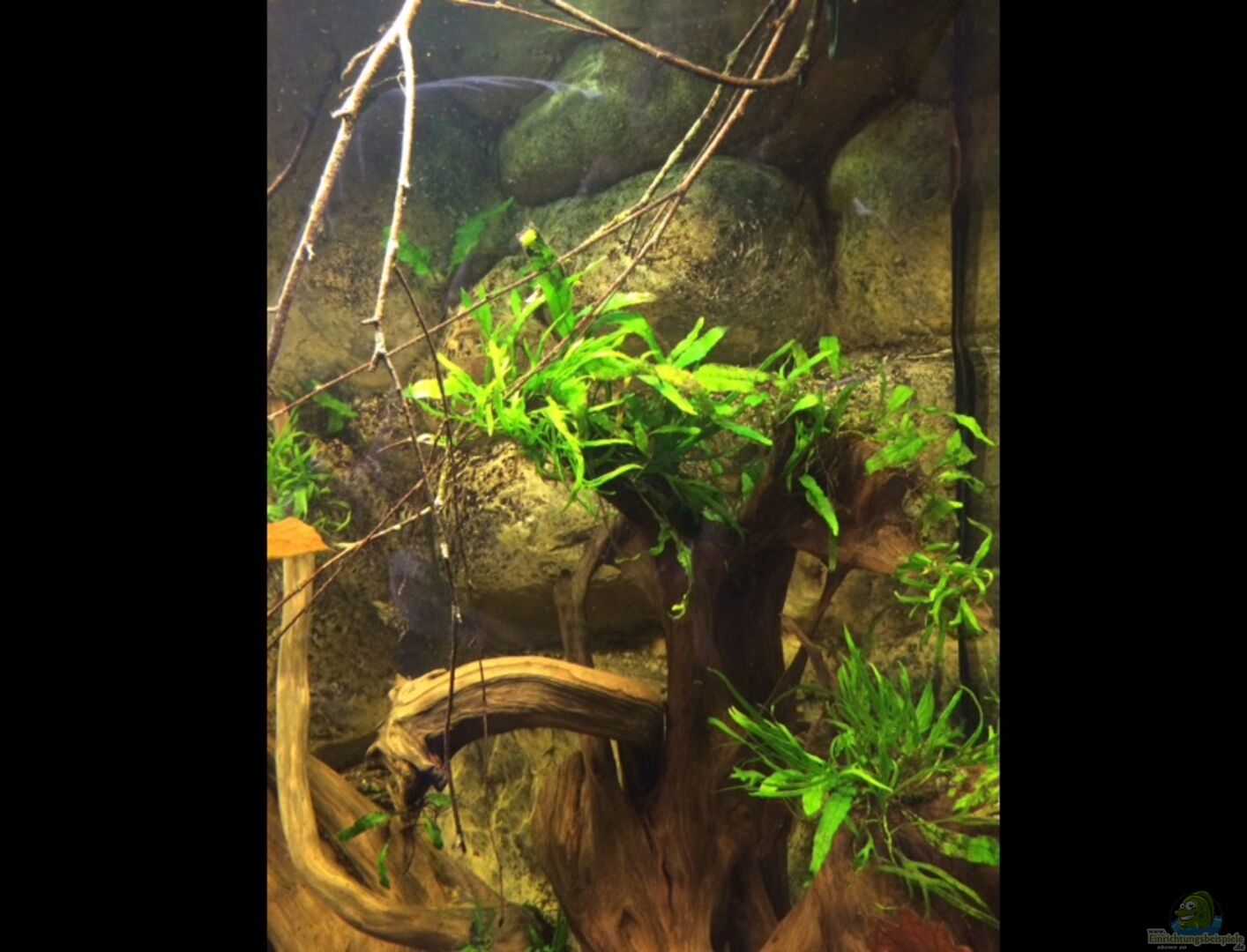 Oktober 2017: In den letzten 2 Jahren hat sich nicht viel geändert. Ab und zu habe ich etwas Javafarn ergänzt, da die Oskars etwas umdekoriert haben. Au??erdem haben die Bucephalandra auf Dauer nicht das geringe Licht ausgehalten und sind verkümmert. Dafür sind die gro??en Anubias neu eingezogen.
