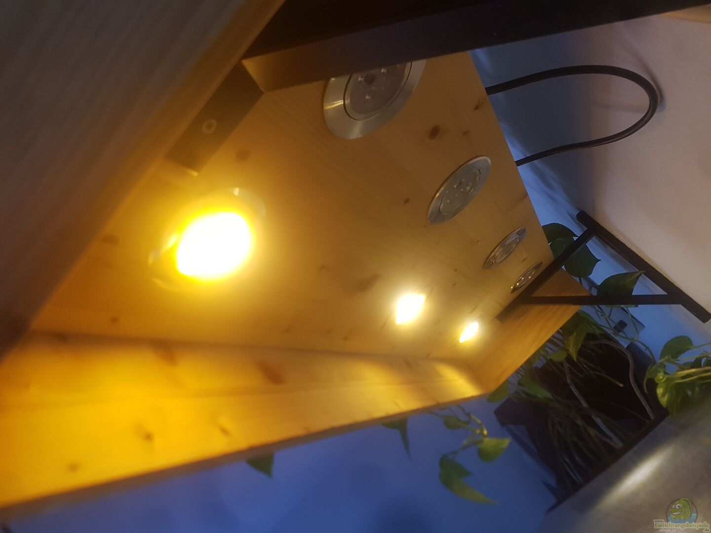 Als Beleuchtung nehme ich immer noch LED Spots für den Au??enbereich in Warmwei??.