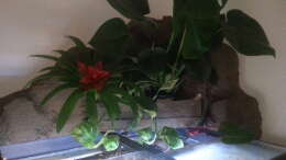künstlicher Ficus von exo terra ... so angebracht das sie von oben über die Wurzeln ins Wasser ragen