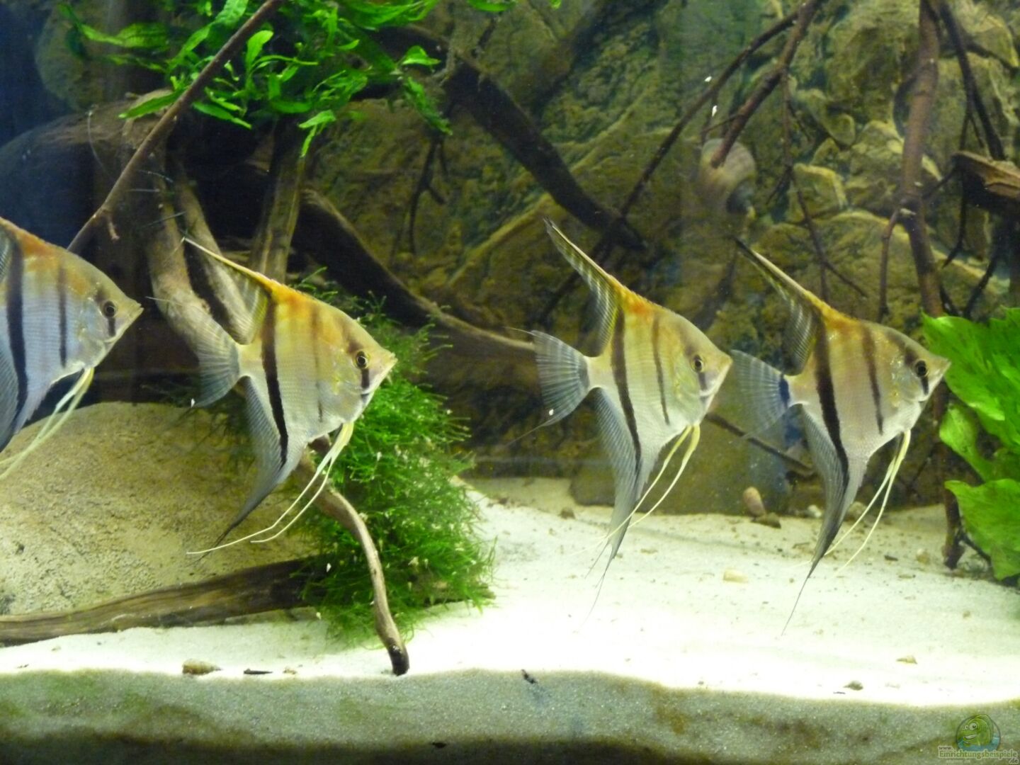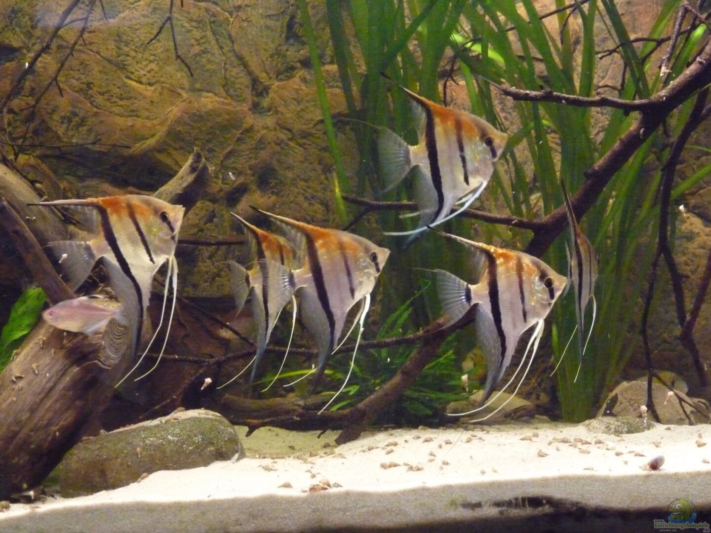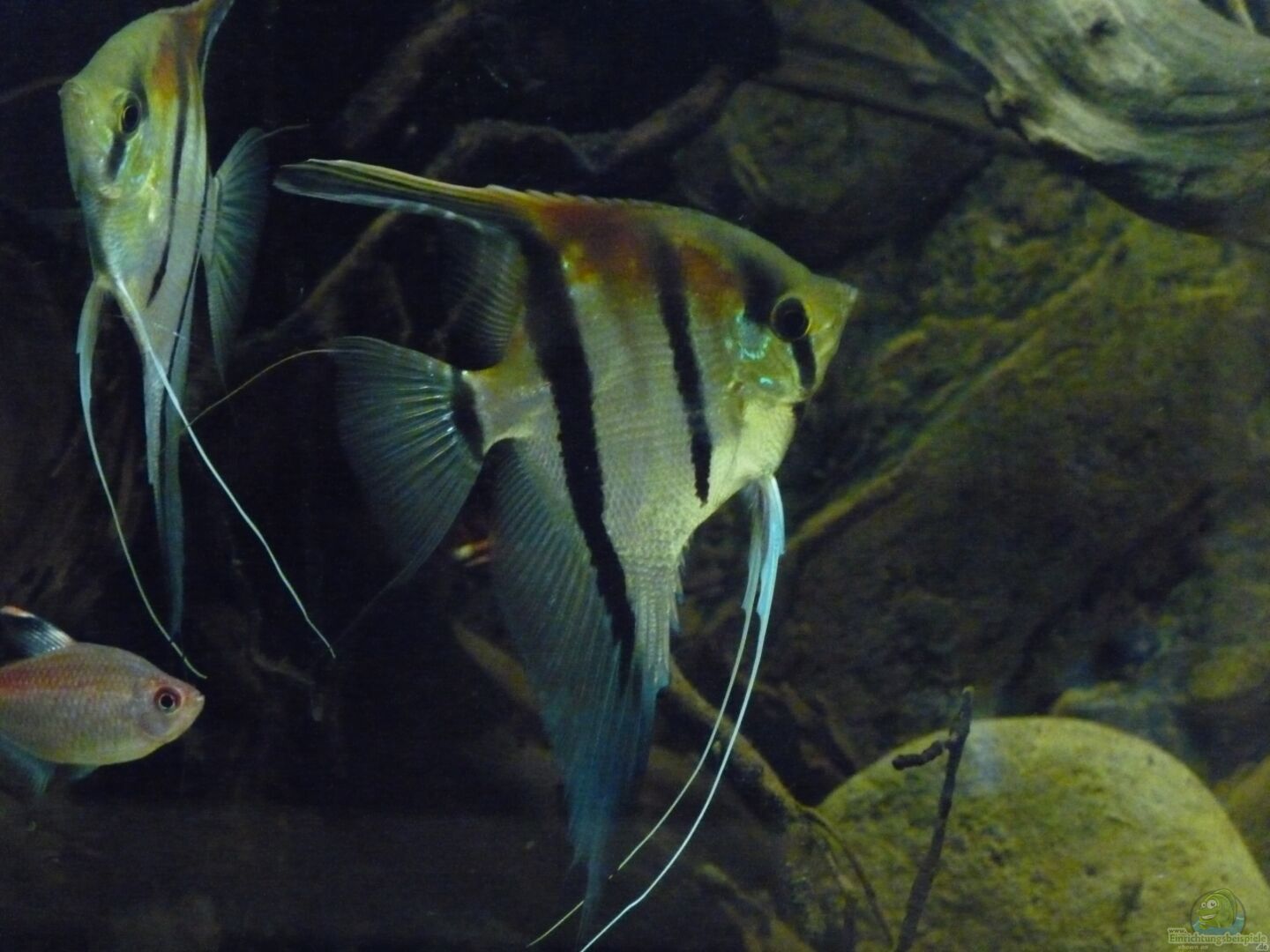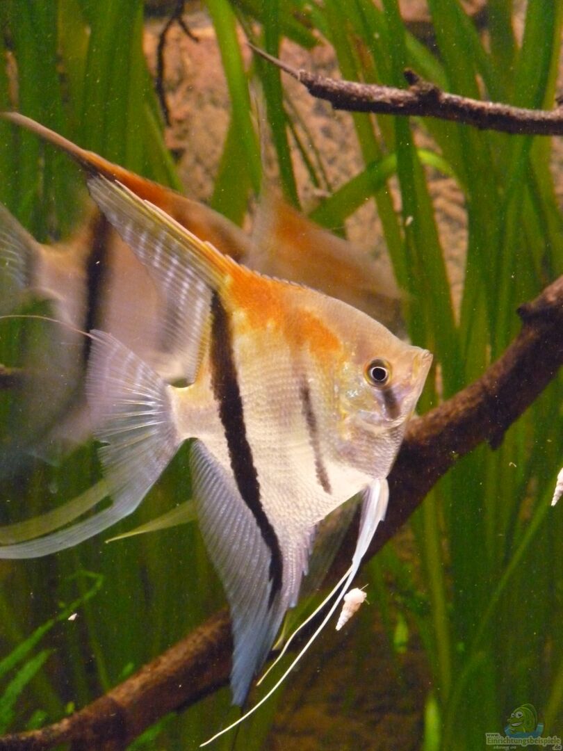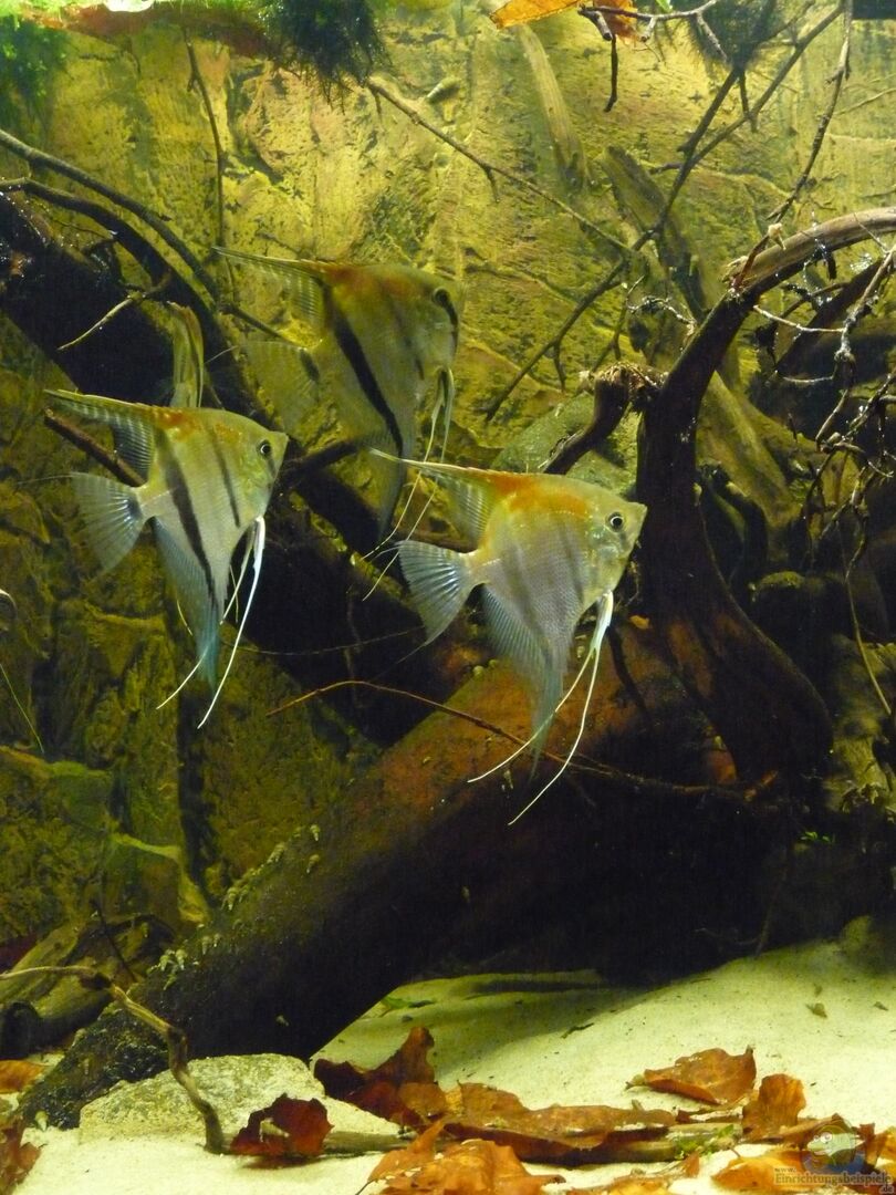 Die Skalare mussten leider ausziehen, da die Harmonie mit der Bildung des ersten Paares leider doch schneller als gedacht zu Ende ging. Nachdem zunächst nur etwa 1/3 des Beckens als Revier bezogen wurde, nahm das Pärchen schnell 2/3 des Beckens ein und lie?? den anderen kaum noch Platz. Als das Becken dann nach dem modern zweier Wurzeln leerer wurde, war es ganz vorbei und es herrschte eine ziemliche Hektik im Becken. Die Haltung nur eines Paares kam für mich aber nicht in Frage, sodass ich mich unter Bauchschmerzen lieber von allen Tieren getrennt habe.