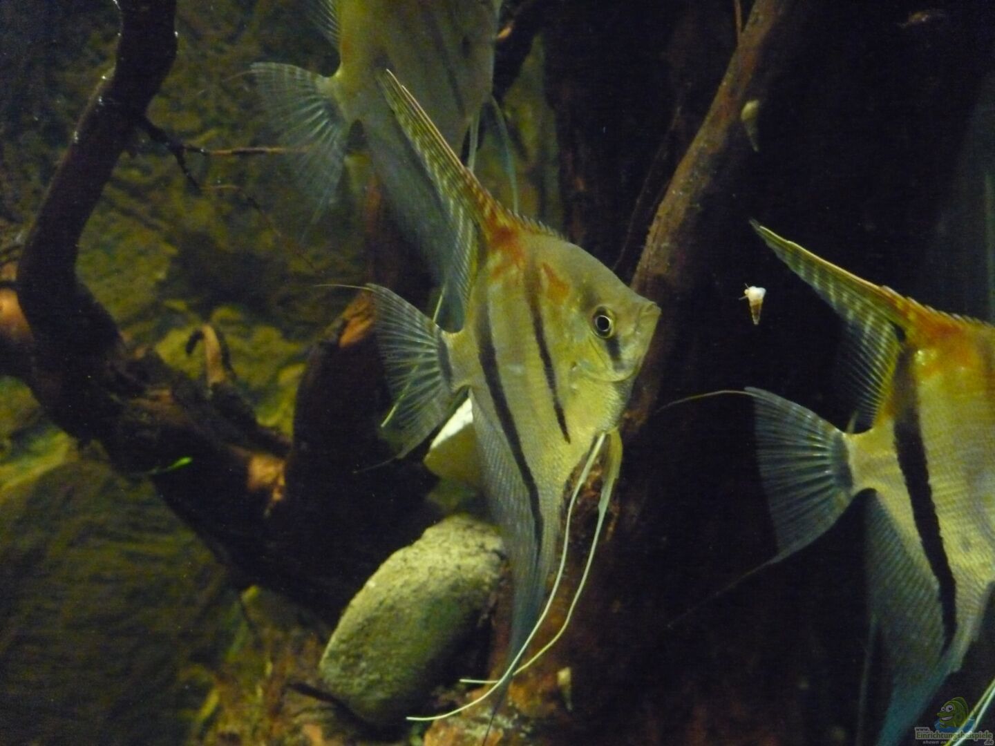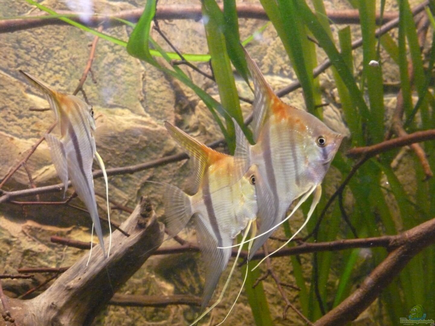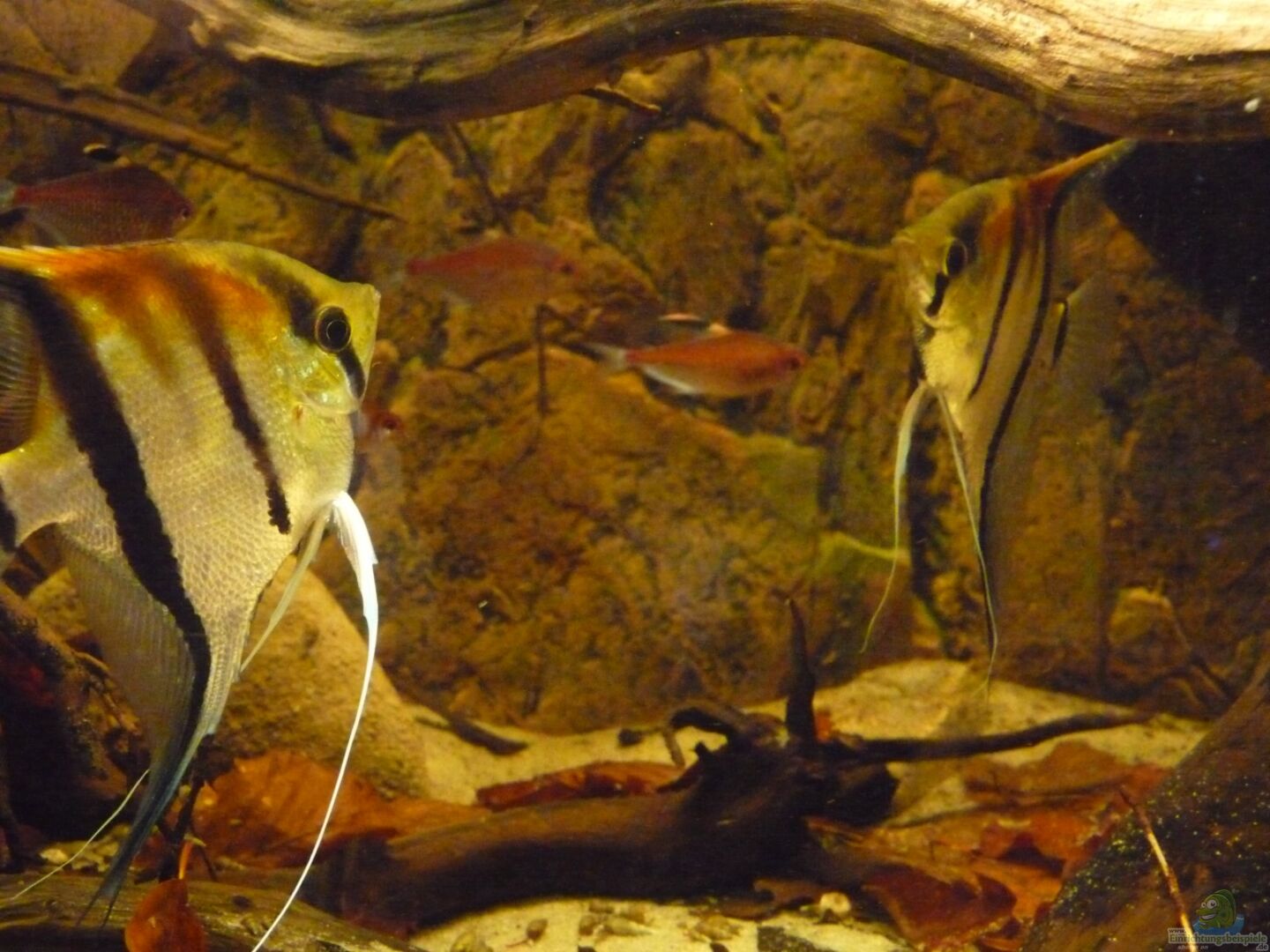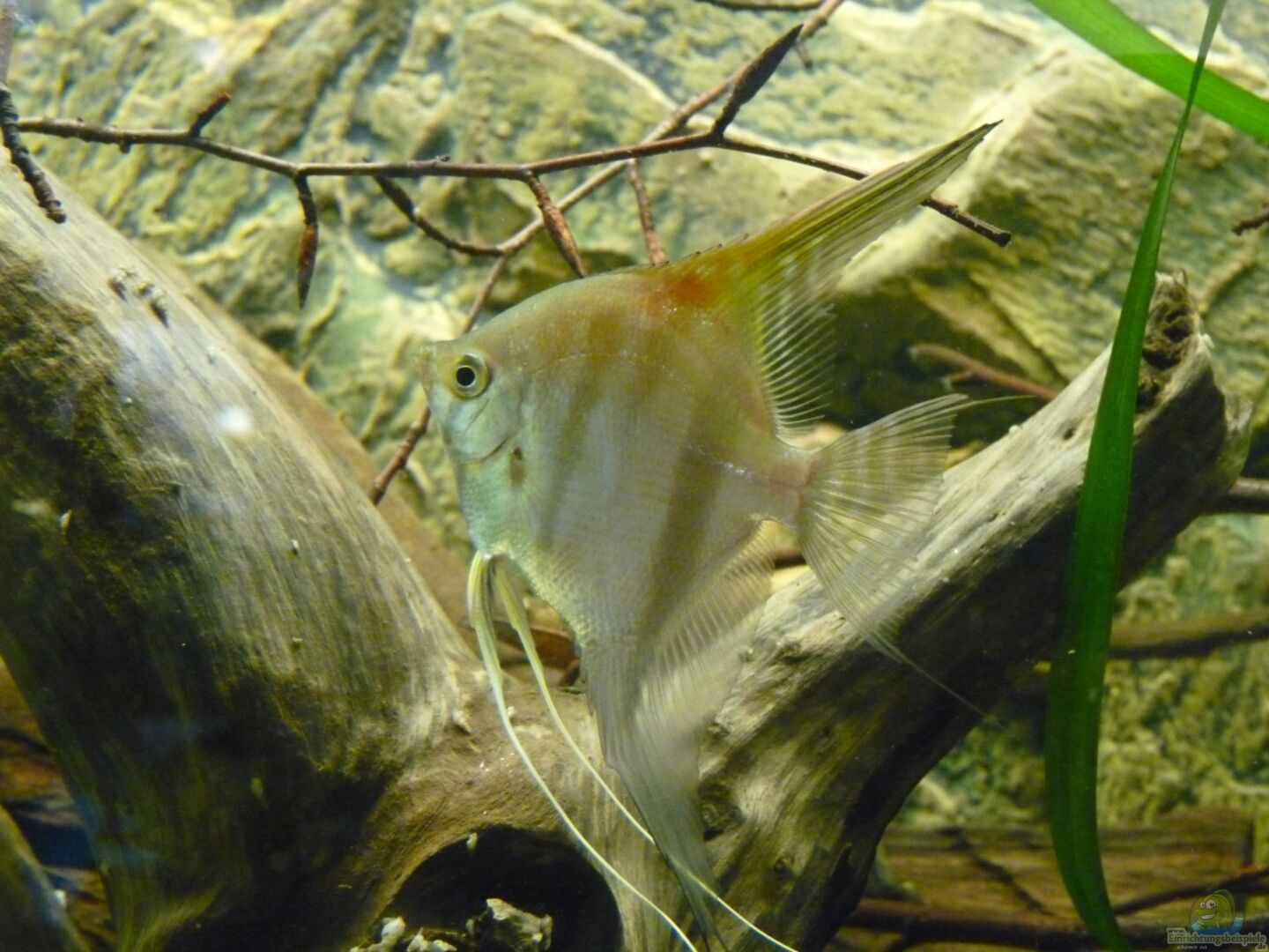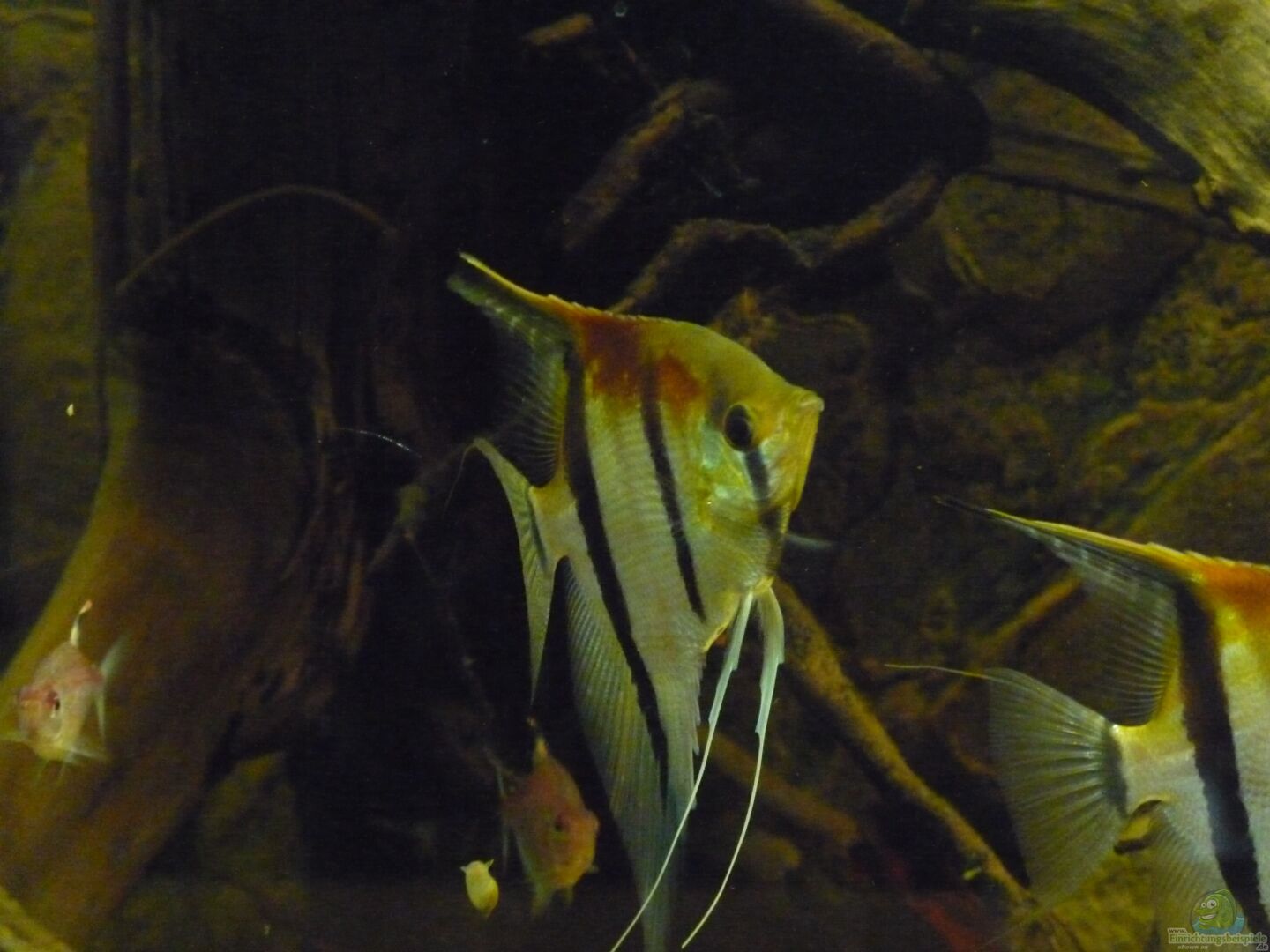 Die Skalare mussten leider ausziehen, da die Harmonie mit der Bildung des ersten Paares leider doch schneller als gedacht zu Ende ging. Nachdem zunächst nur etwa 1/3 des Beckens als Revier bezogen wurde, nahm das Pärchen schnell 2/3 des Beckens ein und lie?? den anderen kaum noch Platz. Als das Becken dann nach dem modern zweier Wurzeln leerer wurde, war es ganz vorbei und es herrschte eine ziemliche Hektik im Becken. Die Haltung nur eines Paares kam für mich aber nicht in Frage, sodass ich mich unter Bauchschmerzen lieber von allen Tieren getrennt habe.