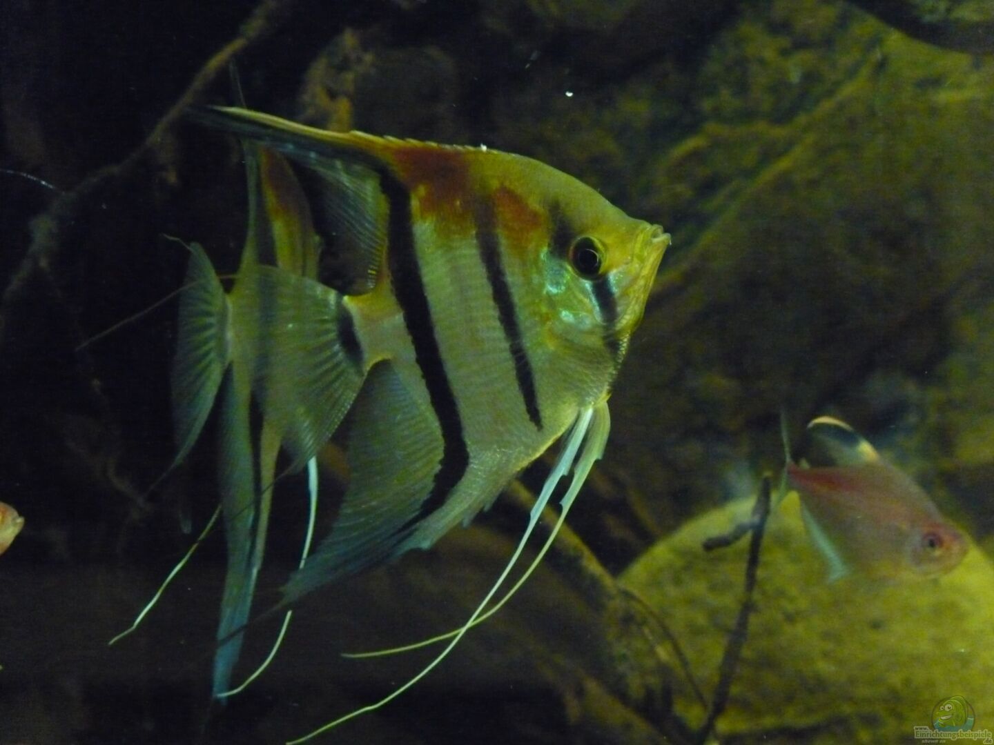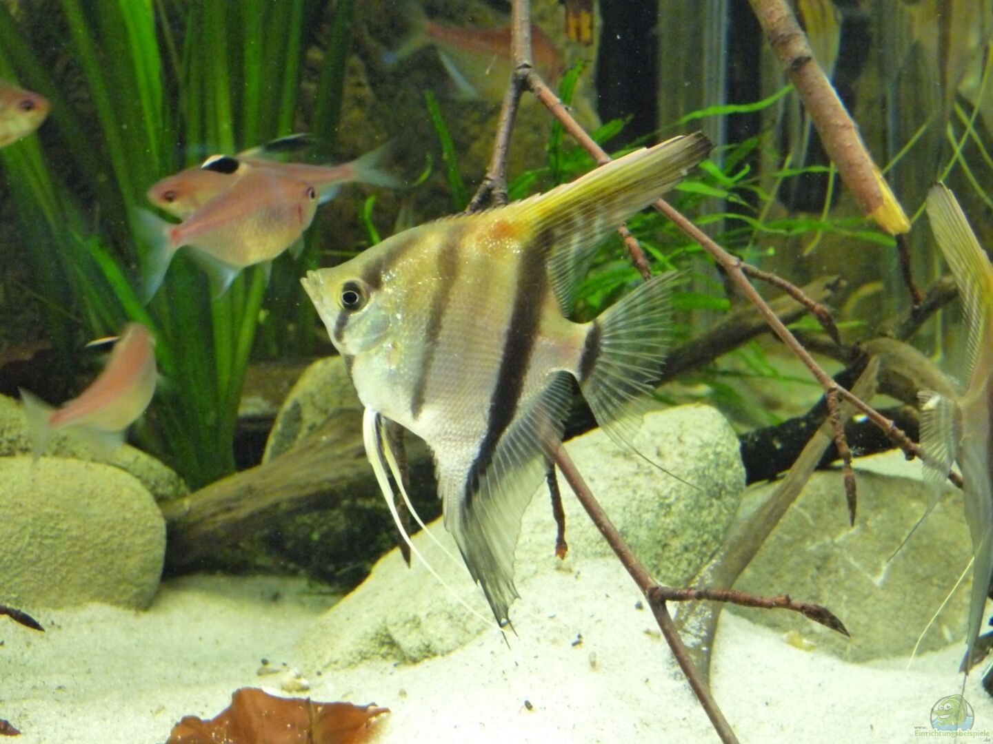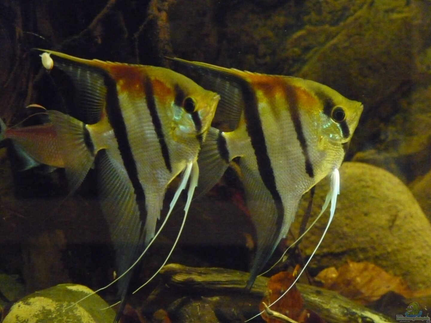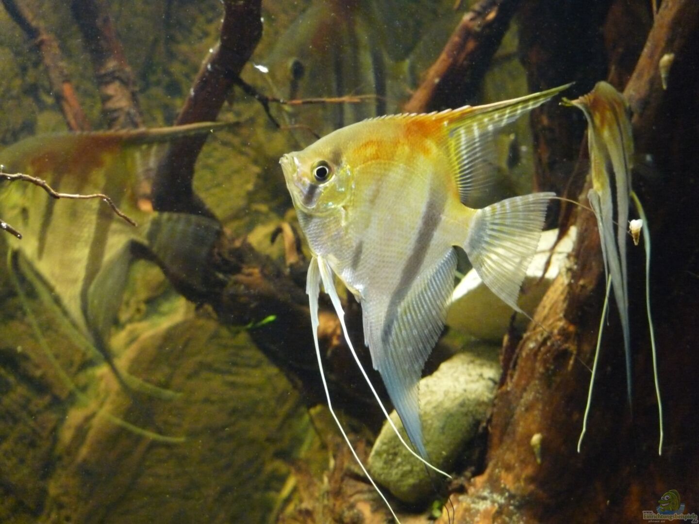 Die Skalare mussten leider ausziehen, da die Harmonie mit der Bildung des ersten Paares leider doch schneller als gedacht zu Ende ging. Nachdem zunächst nur etwa 1/3 des Beckens als Revier bezogen wurde, nahm das Pärchen schnell 2/3 des Beckens ein und lie?? den anderen kaum noch Platz. Als das Becken dann nach dem modern zweier Wurzeln leerer wurde, war es ganz vorbei und es herrschte eine ziemliche Hektik im Becken. Die Haltung nur eines Paares kam für mich aber nicht in Frage, sodass ich mich unter Bauchschmerzen lieber von allen Tieren getrennt habe.