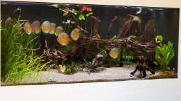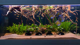 Neue Diskus, Salmer und Welse seit dem letzten Update eingezogen, siehe Besatz. Scape umdekoriert. Der Goldringelkugelfisch hat ein Artbecken bekommen (Er hat sich gut mit den Diskus verstanden).