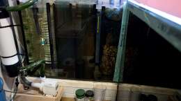 Filterbecken ~170Liter 70x40x60 direkt angeklebt an des Aquarium (Oberkante Filterbecken = Oberkante Aquarium). Filterbecken mit keramischen Filtermedien Efimech und Efisubstrat sowie Filtermatten.