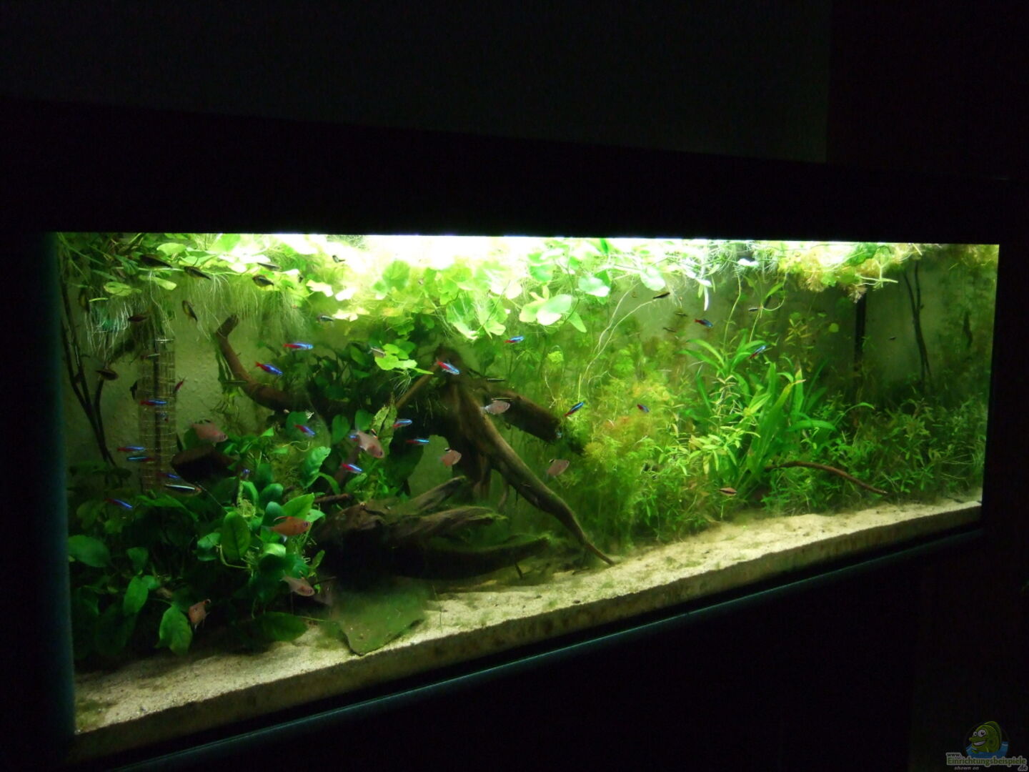 Die Neonsalmler habe ich auch aus dem alten Becken übernommen. Da sie pflegeleichter als der Rote Neon sind, habe ich mich für sie entschieden und sie behalten.
