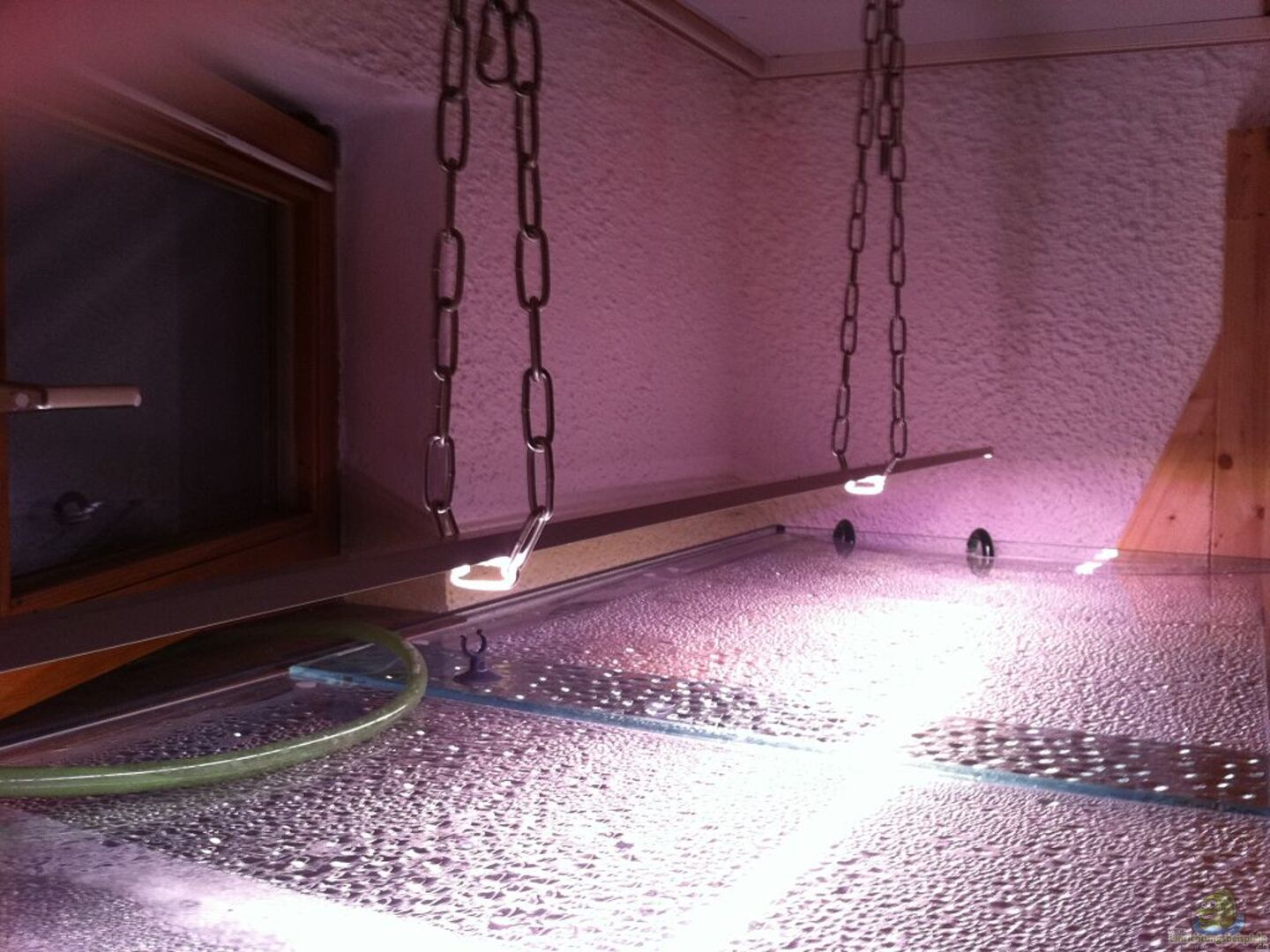 Der Leuchtbalken ist mit Ketten von der Decke abgehängt und hängt ca 20 cm ??ber dem Aquarium.