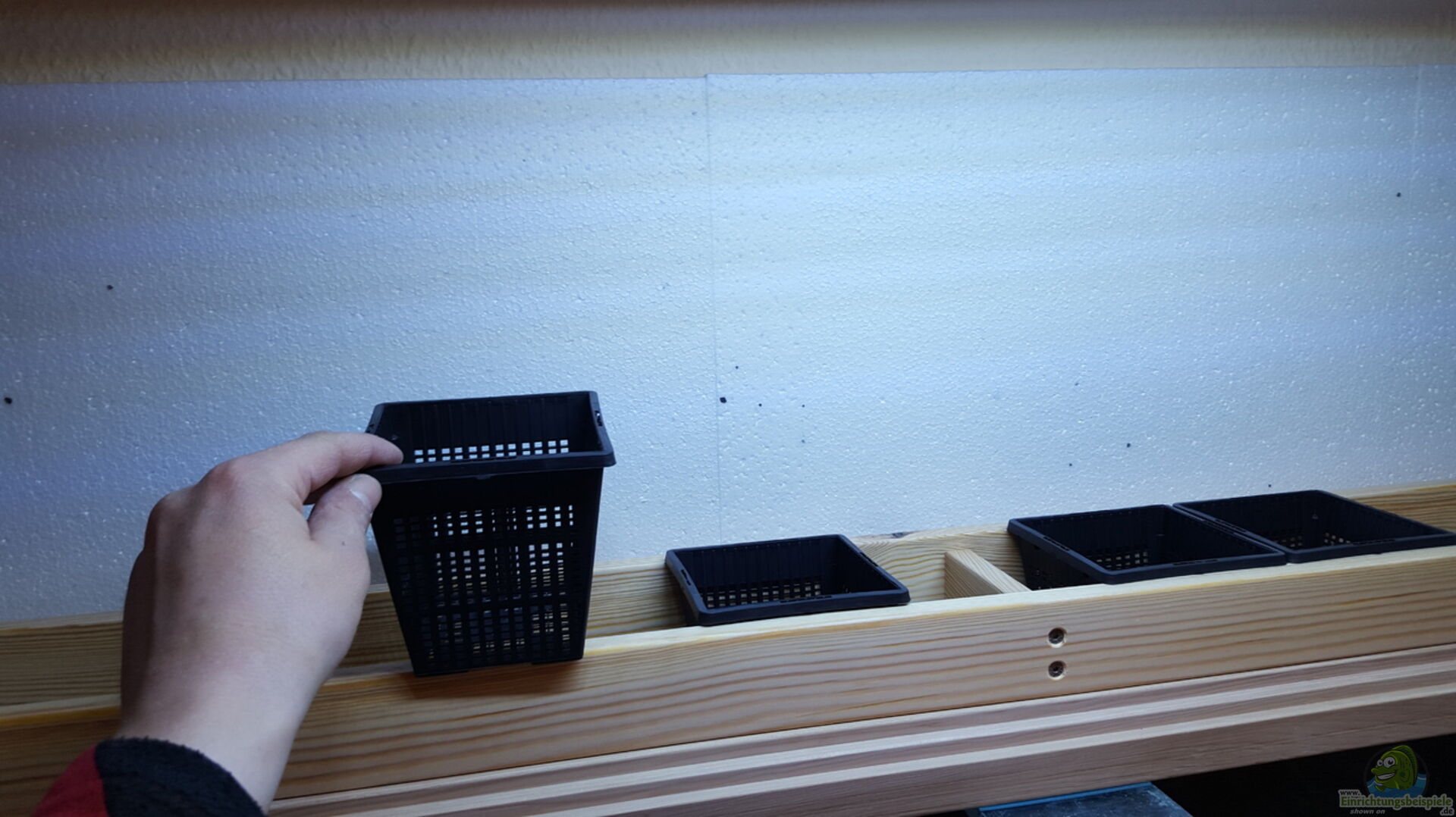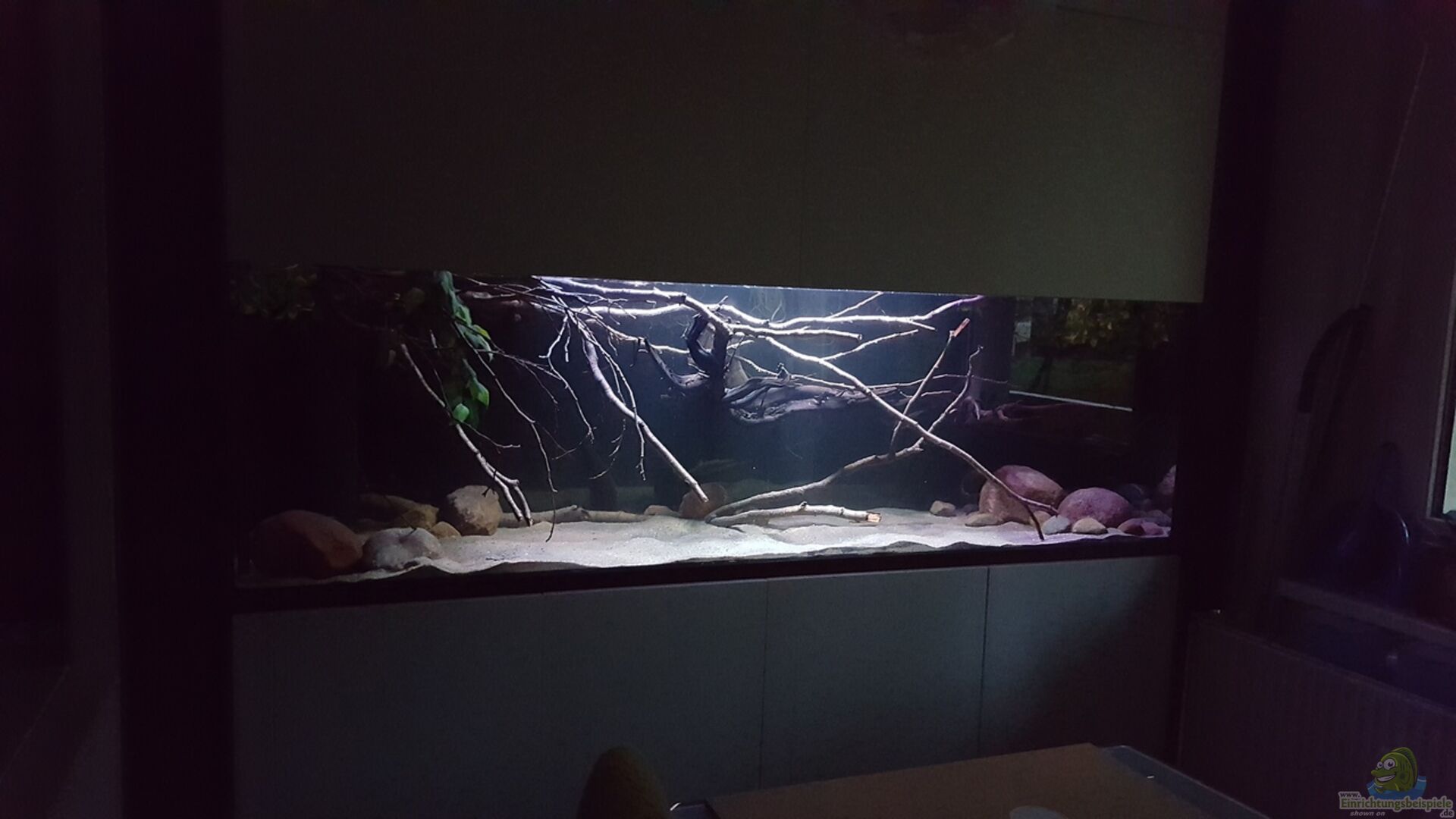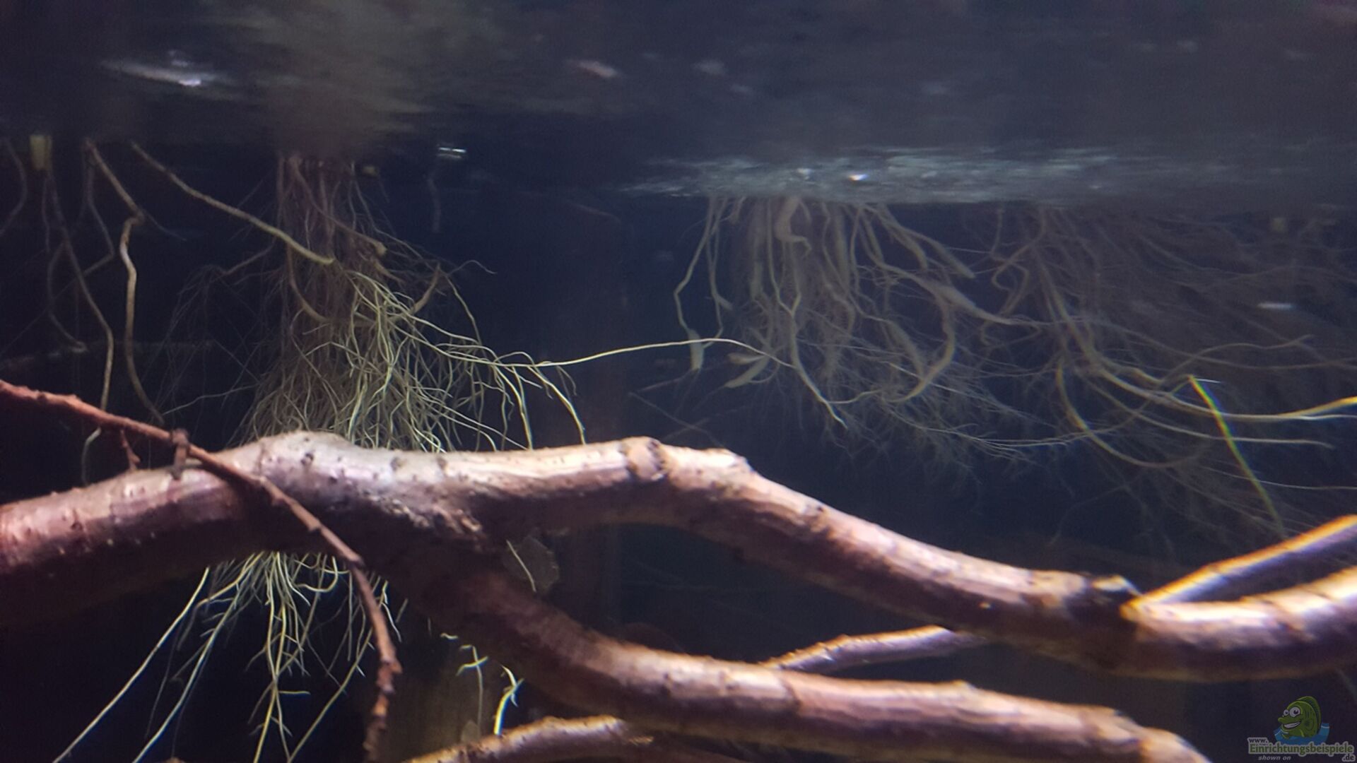 An den Beckenrändern habe ich künstliche Pflanzen der Marke exo terra verwendet (weil dort kaum licht ankommt) um einen kleines Biotop mit Randgestrüpp besser nach zu ahmen.