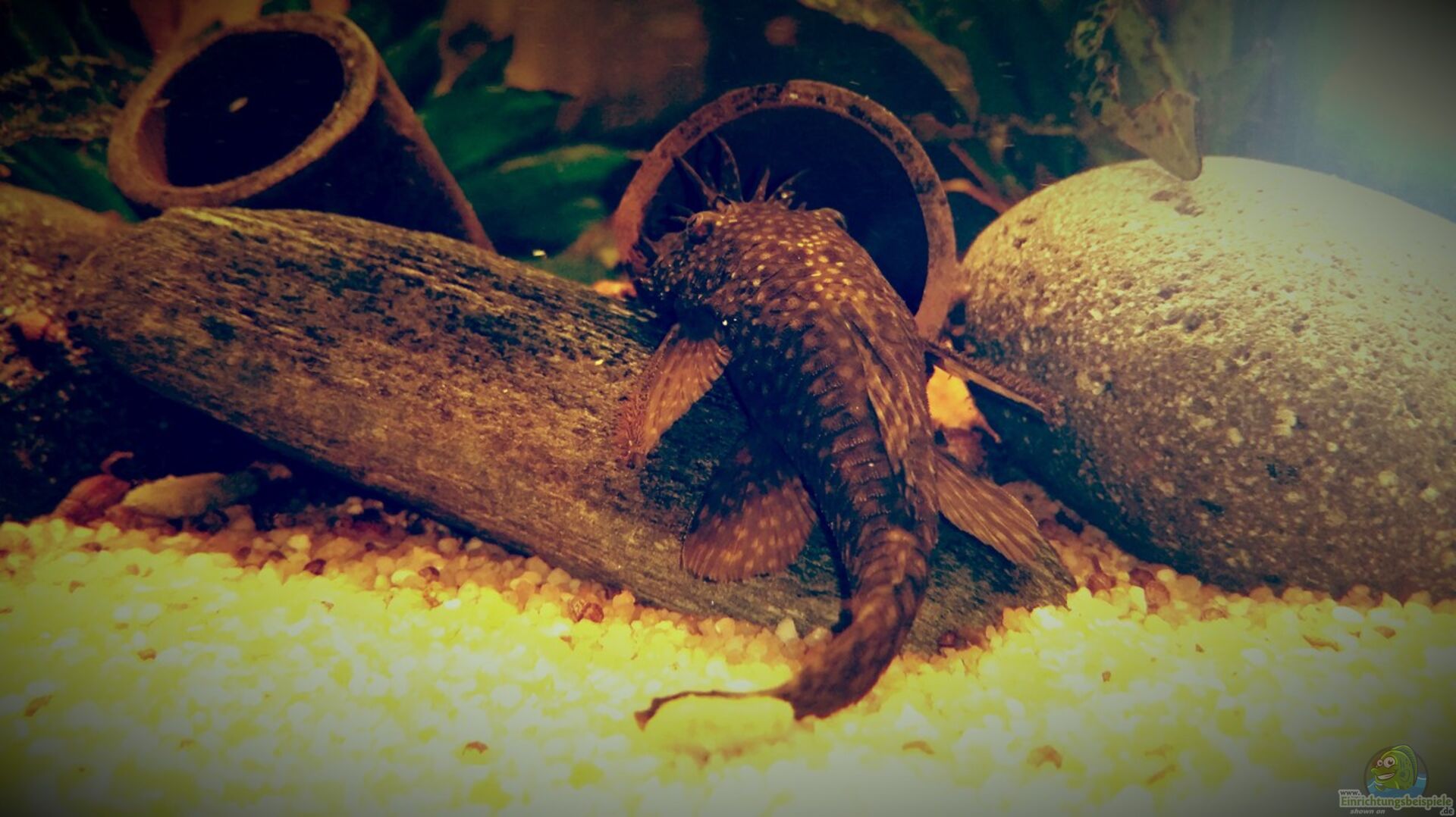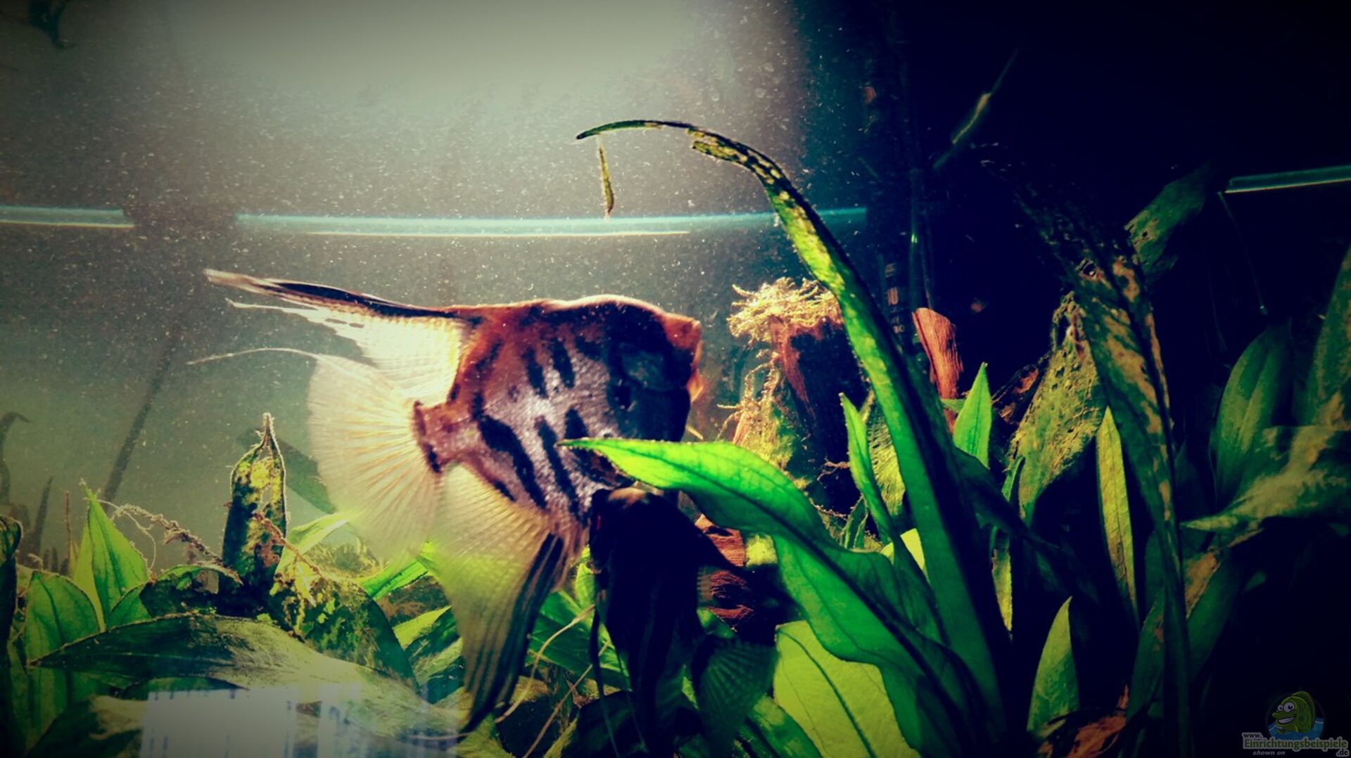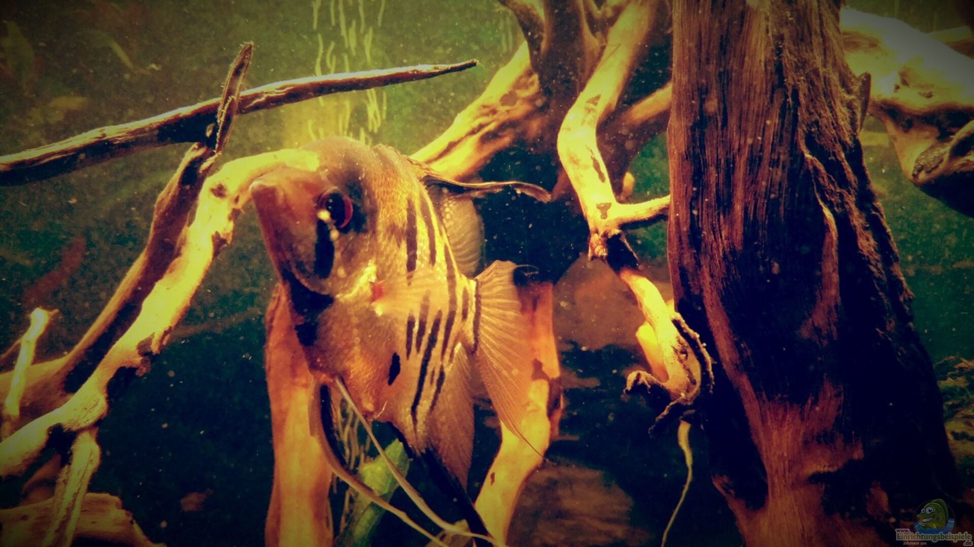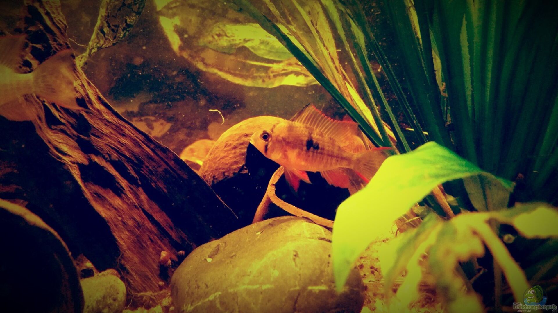 Dieses Becken soll das beschriebene Szenario zeigen. Einige Wurzel und ein dichtes Pflanzen aufkommen in dennen die Fische neue Nahrung und gute Versteckmöglichkeiten vor Räuber die im Amazonas leben finden.
