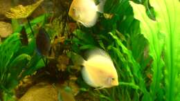 2 Neuzugänge bei den Diskusfischen: 1x Ersatz für den Braunen Diskus, ca. 10cm und 1x Pigeon Blood, auch ca. 8-10cm und zus. 5x Raub-Turmdeckeschnecke.