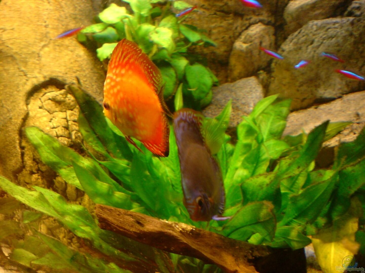 Ansonsten super schön und ich wünsche dir das du keine algen ins becken bekommst. wenn ja, probier es mit schon grö?eren amano garnelen, die putzen und arbeiten bei mir den ganzen tag und werden durch die vielen versteckmöglichkeiten auch nicht von den Disken oder anderen Fischen belästigt!