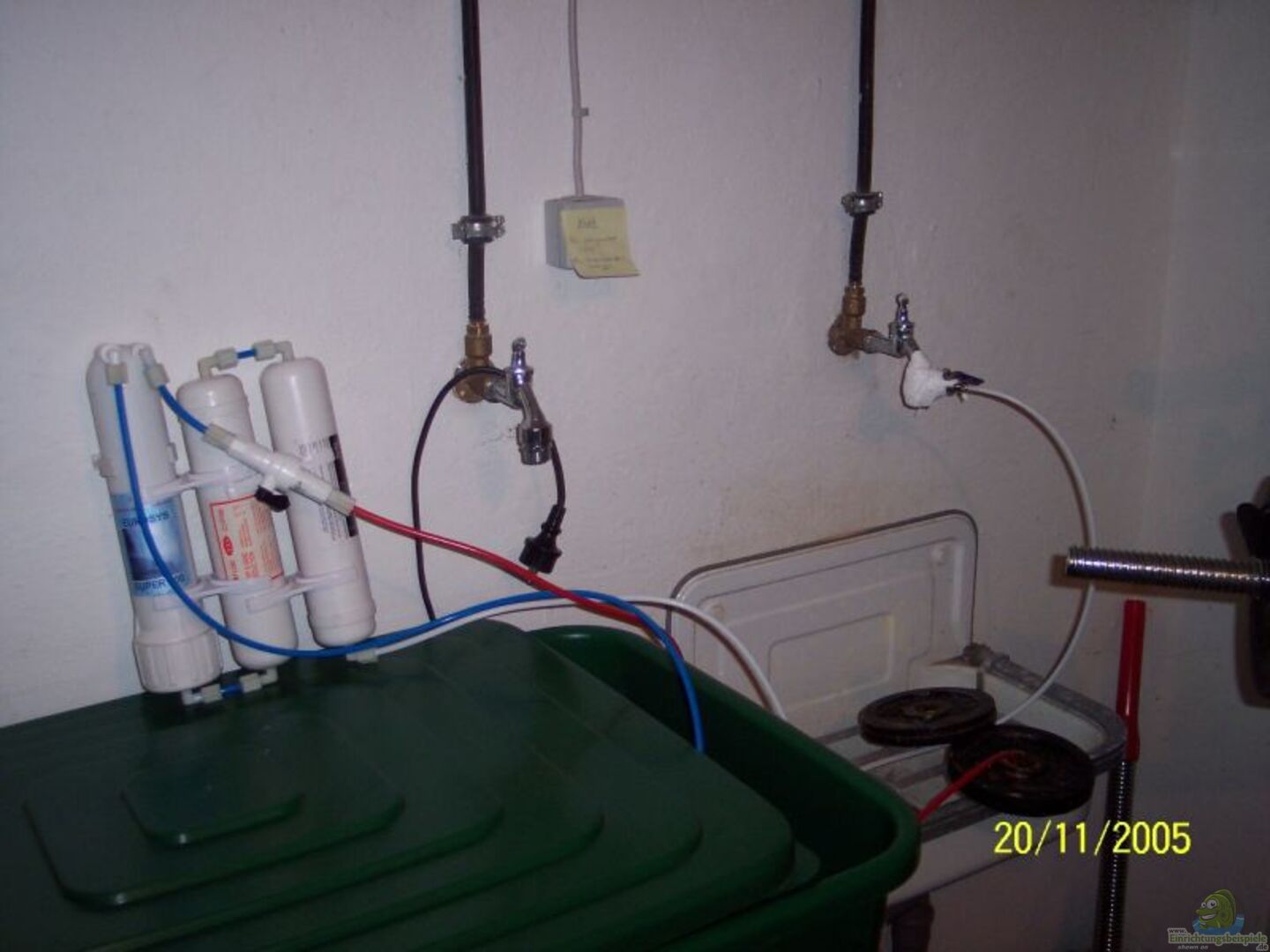 Wasserwechsel: 22-25% des Netto-Beckeninhaltes alle 7-10 Tage, mit Osmosewasser in einer 300 Liter-Tonne auf 3, 0 - 5 GH verschnitten.