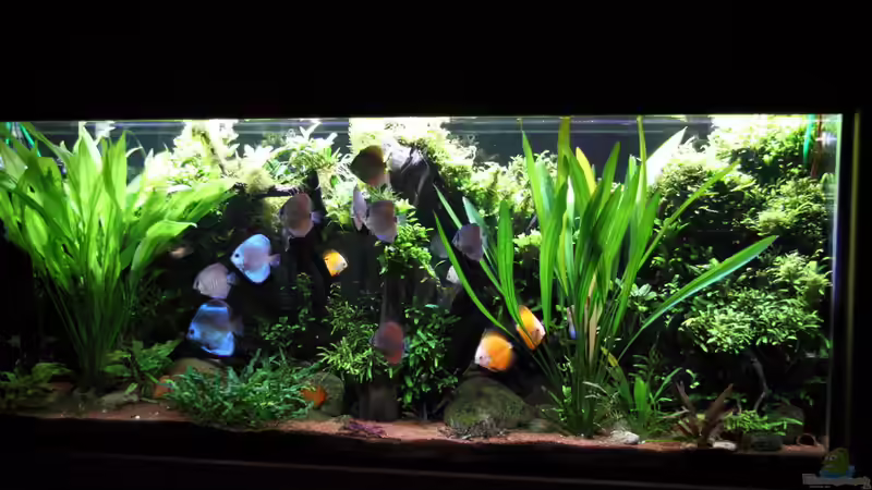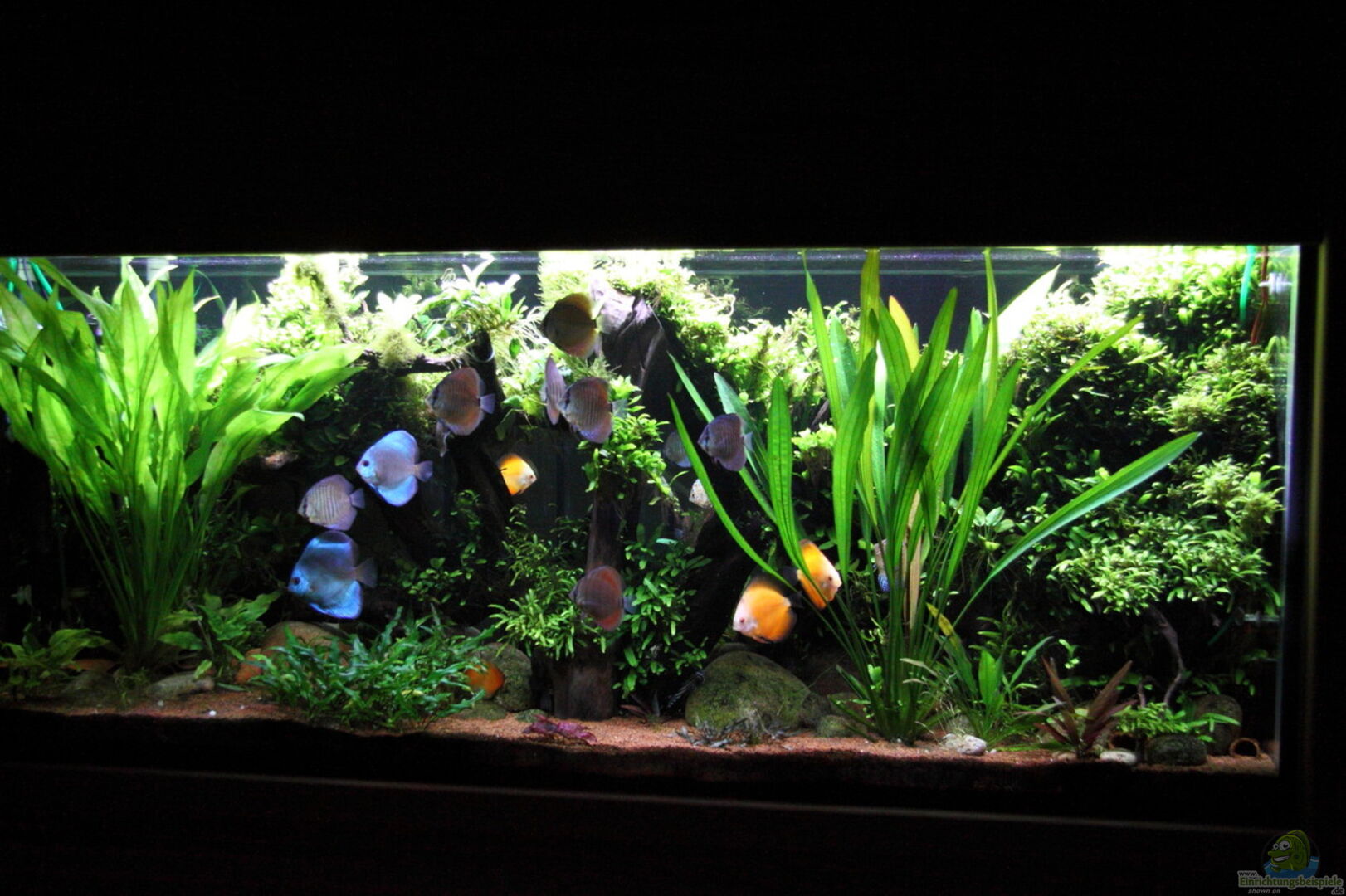 für Aquarianer, die keine Ahnung von Diskus haben, sieht das erstmal beeindruckend aus, 30 kleine Diskus. Ich hoffe, Du bist Dir im klaren drüber, das jeder später nur knapp 20 l hat. Nach heutigen Erfahrungen ist es gut, wenn jeder erwachsene Diskus 80-100 l beanspruchen darf. Ich hatte auch ein paar Jahre Diskus und spreche aus eigener leidvoller Erfahrung. Heute würde ich erwachsene Diskus nie unter 1.000 l halten und dann maximal 10 bis 12/15 Tiere. Zugunsten der Tiere hoffe ich, dass Du Dir darüber im klaren bist. Deine Filterkapazität dürfte dann wohl auch an Ihre Grenzen sto?en. Von der Einrichtung gefällt es mir sehr gut.