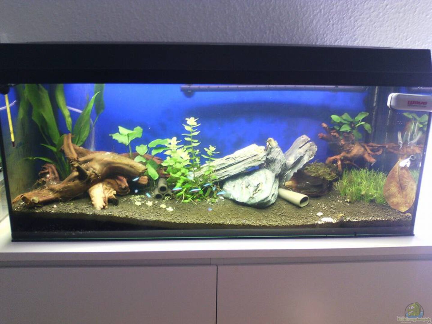 Kann dir nur raten das Mopani herauszunehmen ( ist für dein Becken und die Welse völlig ungeeignet)und mehr Moorkienholz und Höhlen deinen welsen zur verfügung zu stellen.