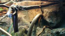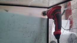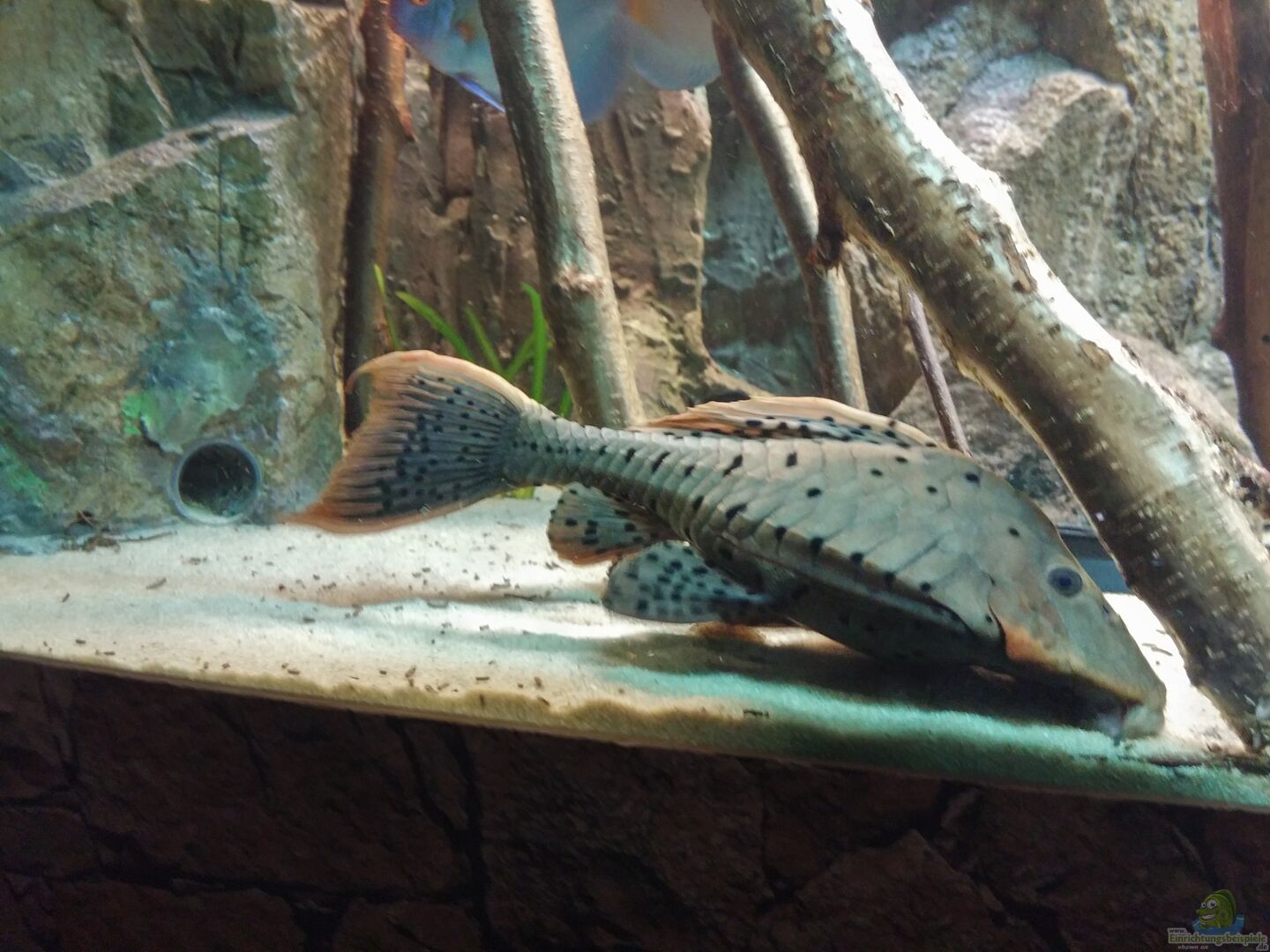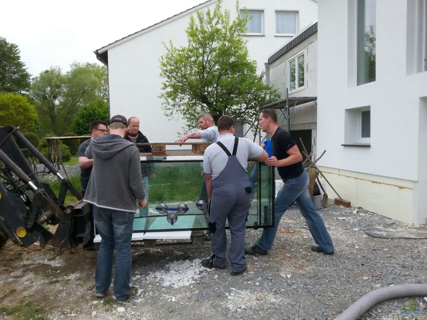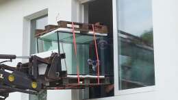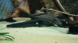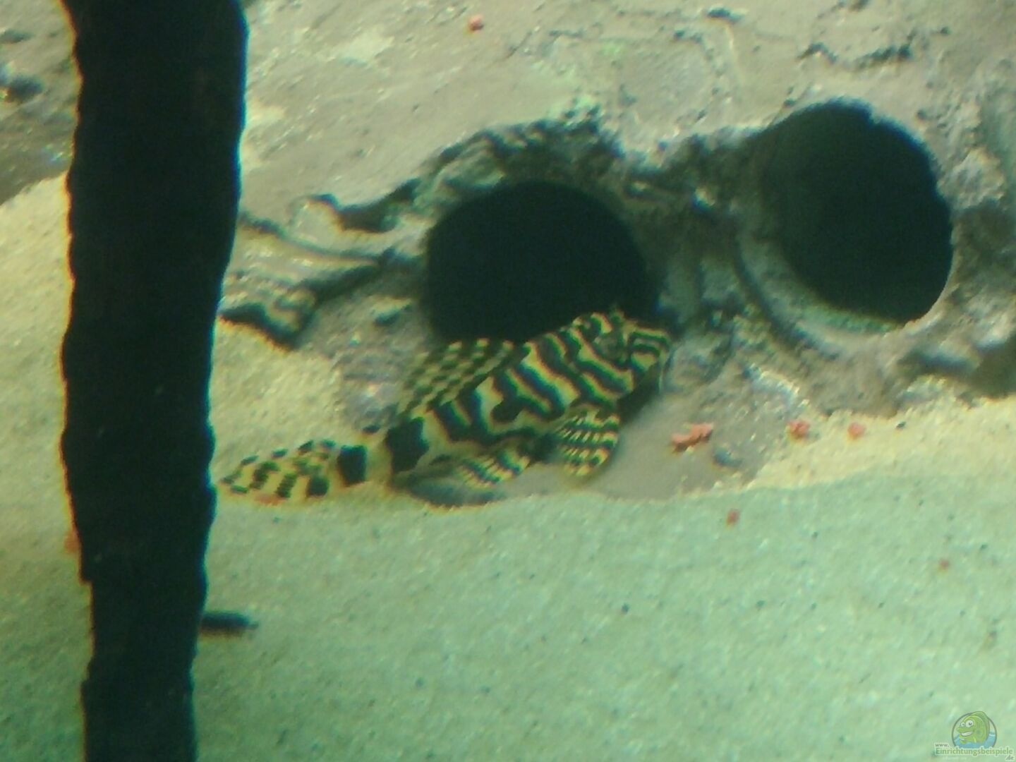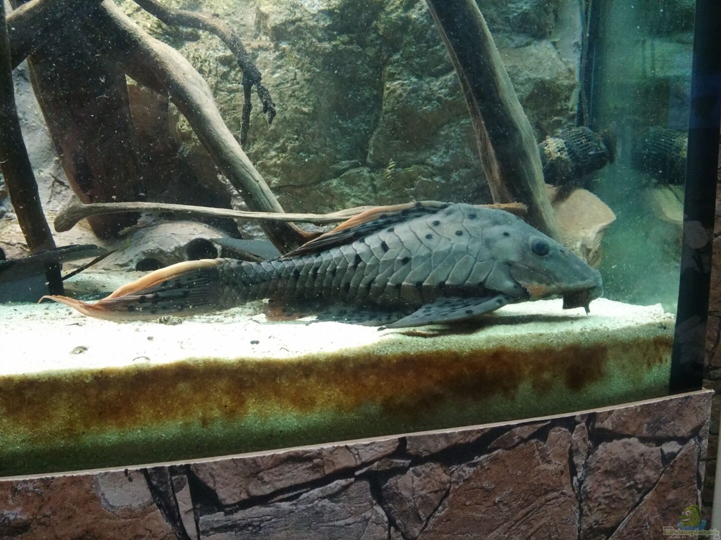 Ich hatte zunehmend Probleme mit sehr schreckhaften Diskus. Das lag offensichtlich an der Hygiene im Becken. Ich hatte durch die eingeklebte Terrasse und die beiden unterschiedlichen Bodengründe (Sand und Kies) ein paar Gammel Stellen im Becken. Ich habe mich dann dazu entschlossen, die Trennung im Bodengrund zu entfernen und den vorhandenen Kies durch Sand zu ersetzen. Damit ein besserer Schmutzabtransport gewährleistet wird habe ich noch zusätzlich die bodennahe Ansaugung vom ??berlaufschacht auf 50mm aufgebohrt. Des weiteren habe ich die Rückwand nachgearbeitet und noch 2 mal mit Epoxidharz versiegelt. Aufgrund des dünnen Sandbodens ist die Einbringung von Pflanzen auf ein Minimum zurück gegangen. Dafür ist noch weiteres Holz ins Becken gekommen. Dabei handelt es sich um einen gro??en Ast eines Wallnussbaumes.