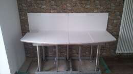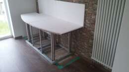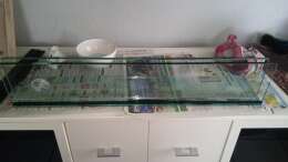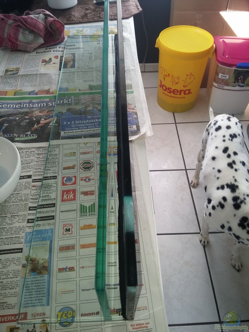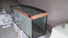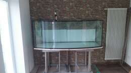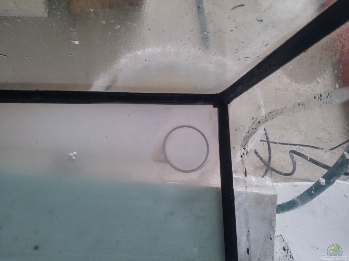 Panorama Becken, 15mm Glasstärke, sto??verklebt mit Sicherheitsnaht, ??berlaufschacht mit 2 Lochbohrungen hinten links, 60mm und 45mm für einen 50mm Ablauf und 32mm Zulauf. Bohrungen habe ich selbst durchgeführt und den ??berlaufschacht selbst eingelebt.