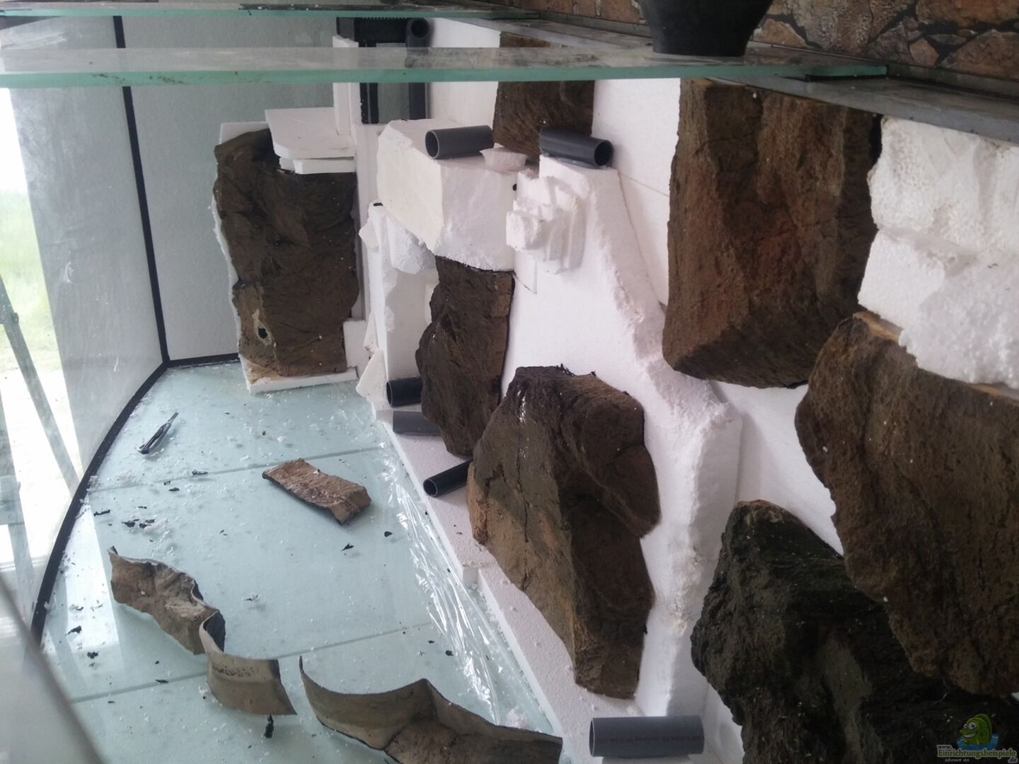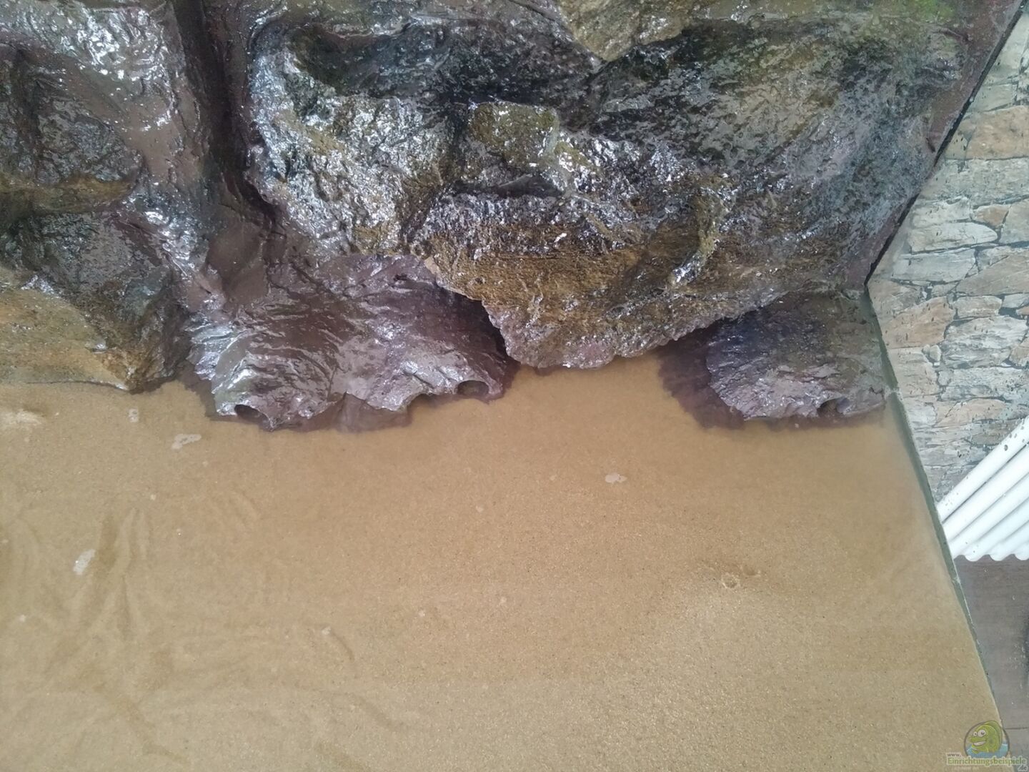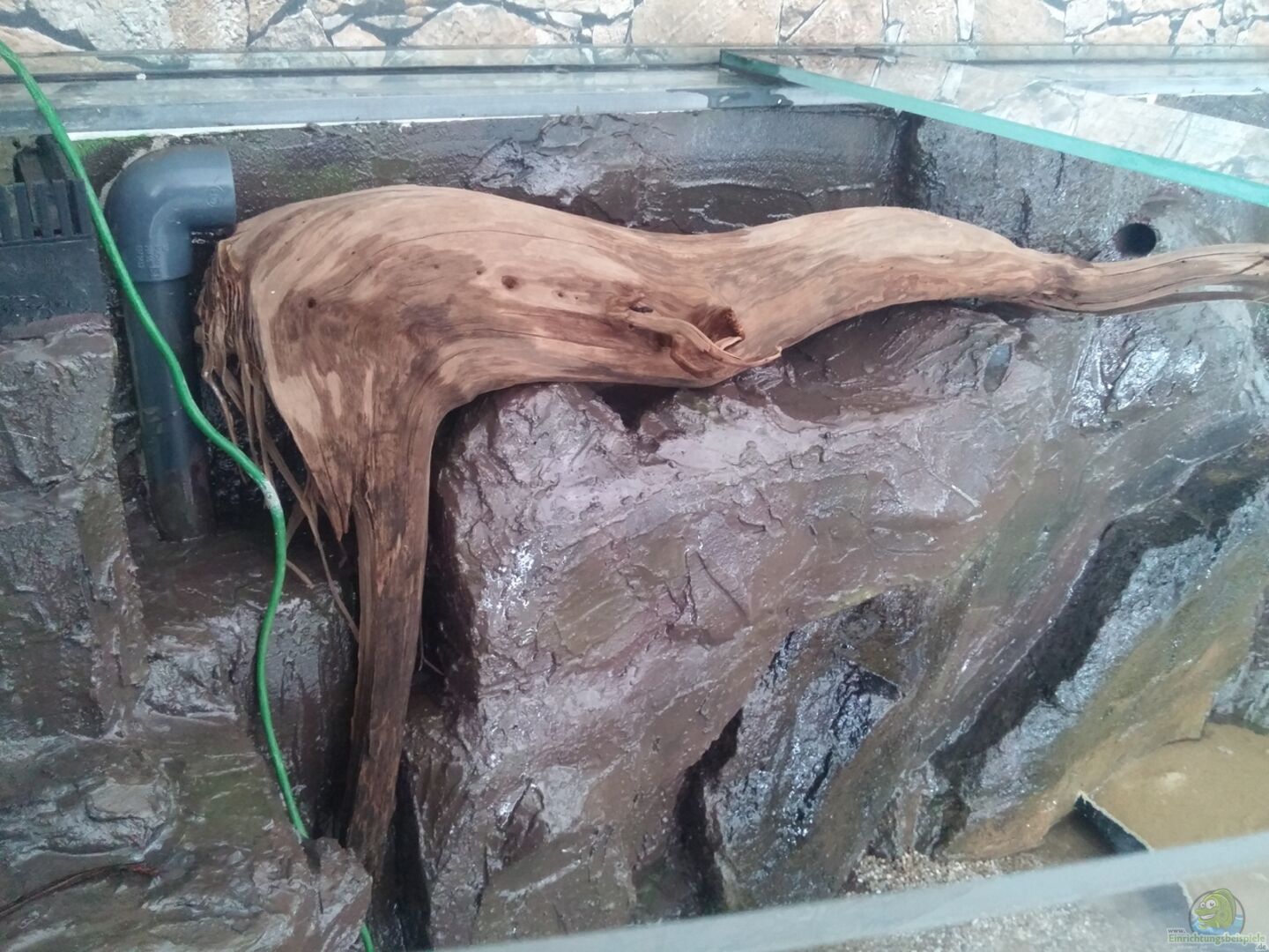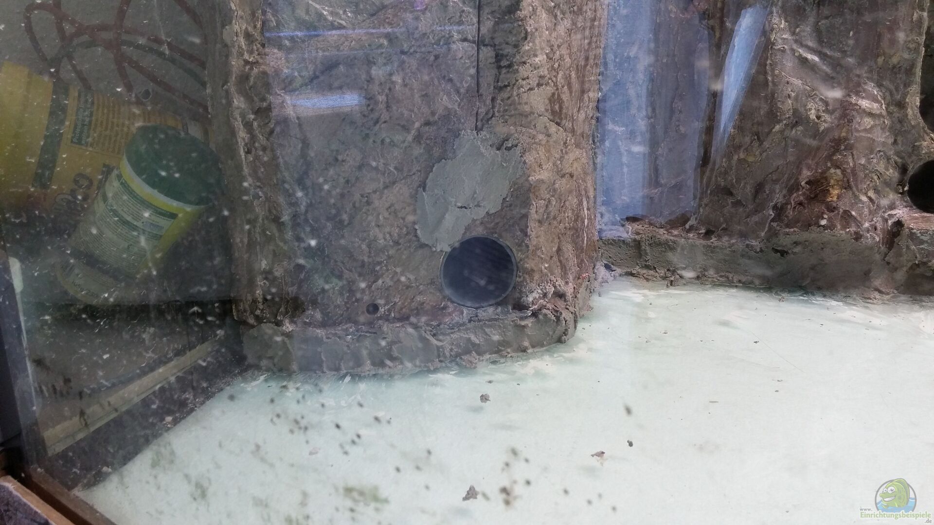 In die Rückwand sind mehrere Höhlen aus Pvc Rohren integriert.