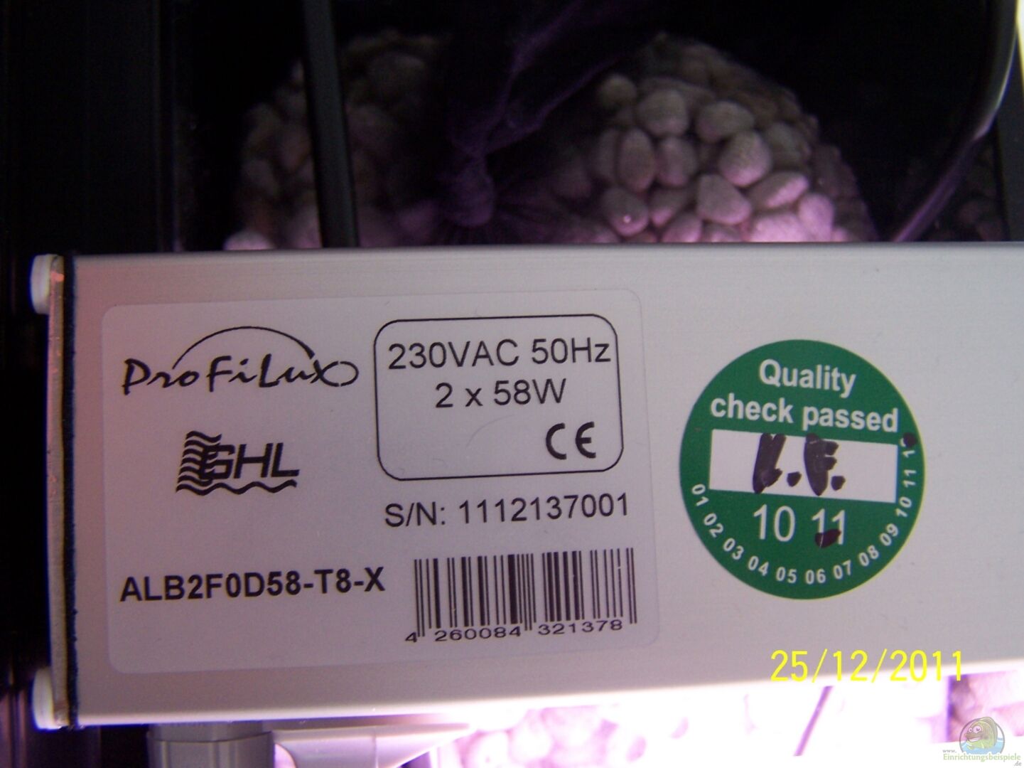25.12.2011 Becken eingerichtet und in Betrieb genommen.