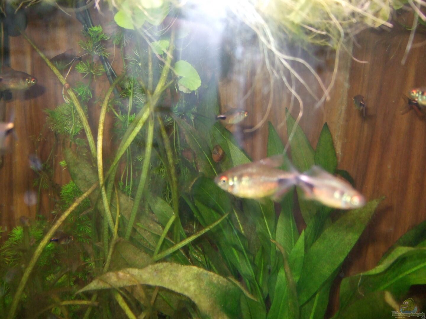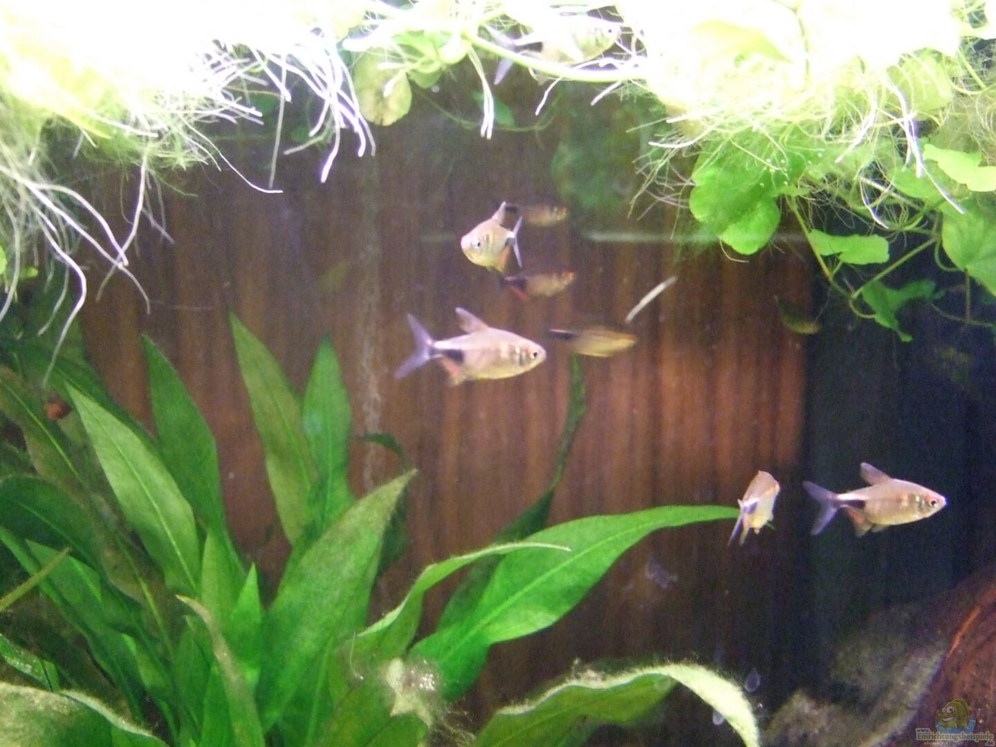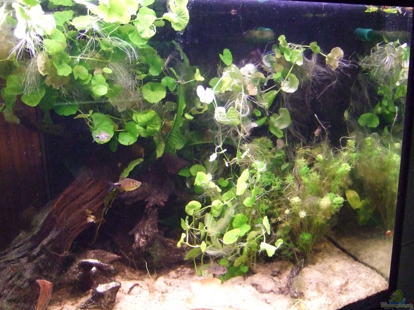 Ich habe die Vergesellschaftung so gewählt, dass der Boden den Cichliden vorbehalten bleibt und die obere Beckenhälfte den Salmlern.