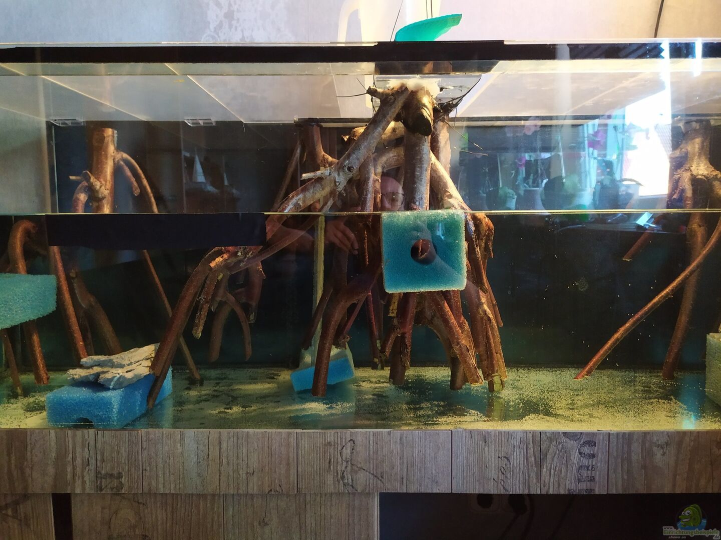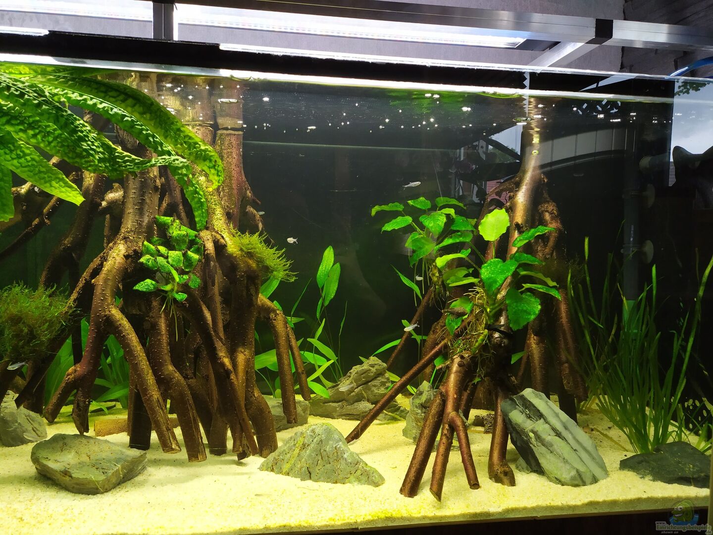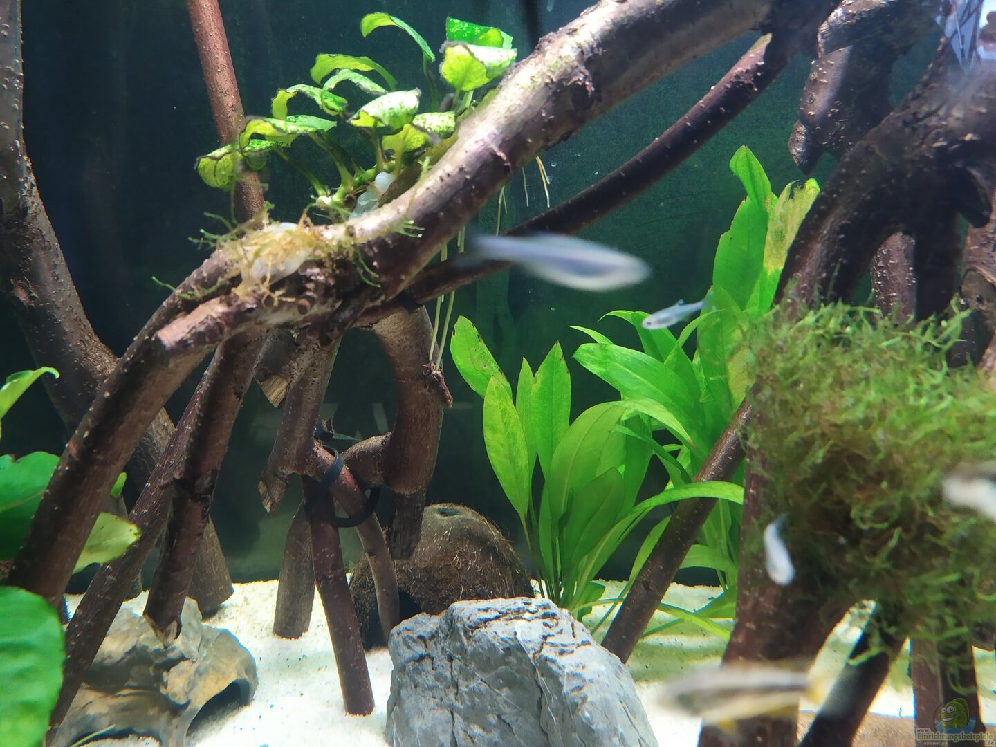 Das Wasser wurde zum Teil aus einem anderen eingelaufenen Aquarium übernommen und zusätzlich habe ich Starterbakterien und Wasseraufbereiter hinzugefügt. Ungefähr eine Woche nach dem Einfahren wurden im Zoofachhandel des Vertrauens alle Werte bestimmt und für Top befunden, also gleich mit dem ersten Besatz angefangen.