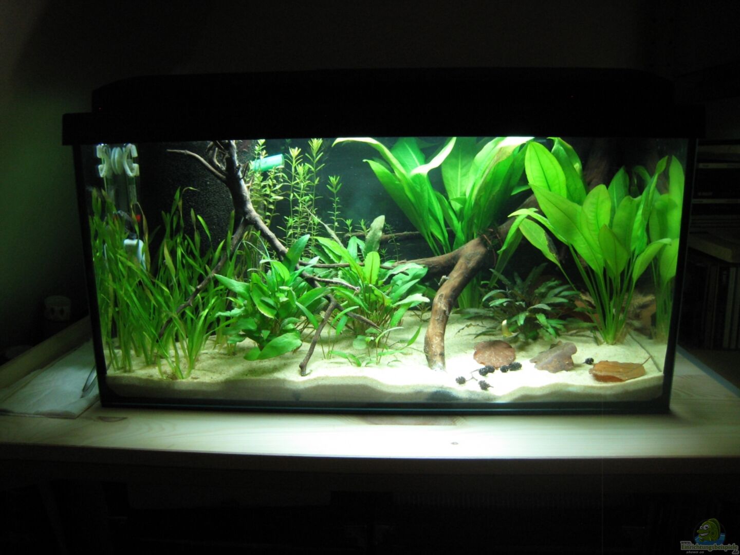 Nachdem ich zwecks Studium meine (Kinder- und Jugendsünden-) Aquarien zu Hause lassen musste, konnte ich irgendwann doch nicht ohne und bin ziemlich schnell von der Idee eines Gesellschaftsaquariums zum Artaquarium gekommen. Nach einigen vorherigen ??berlegungen zu den Welsen, die mit in das ursprüngliche Gesellshaftsbecken sollten, kristallisierte sich ziemlich schnell heraus, dass, wenn nur irgend möglich, Aspidoras pauciradiatus gepflegt werden sollten (...ohne jemandem zu nahe treten zu wollen: ES SIND DIE TOLLSTEN FISCHE DER WELT!!!).