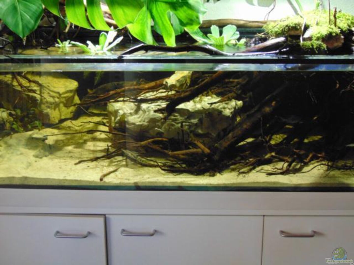 Ich habe das Moorkienholz eingebracht und im rechten Bereich eine Totholzzone mit ordentlich Struktur geschaffen. Au??erdem habe ich die emerse Bepflanzung angebracht.