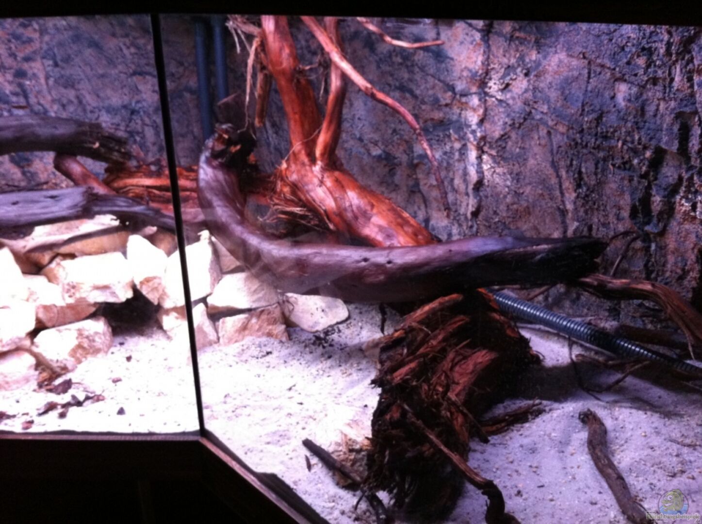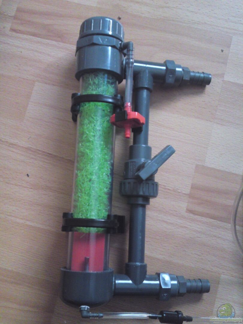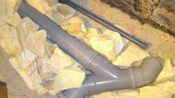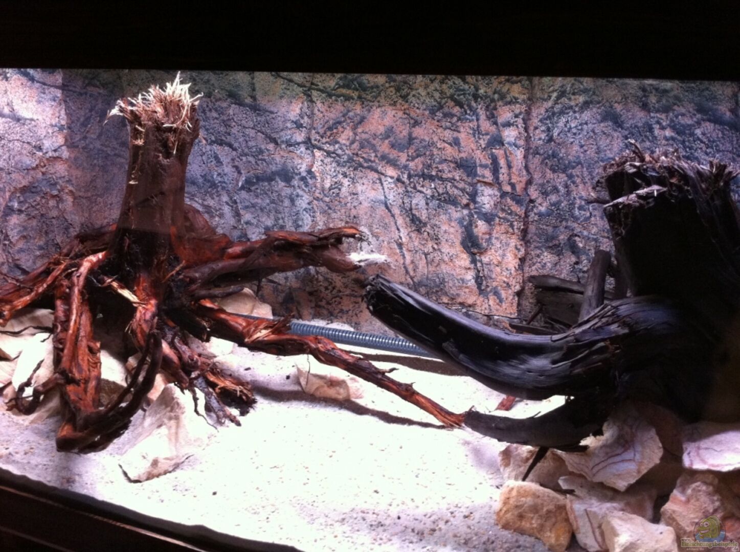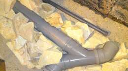 Diese wurde dann so hinter den Steinaufbauten platziert, das Sie die Rohre in der hinteren Mitte des Aquariums verdeckt.