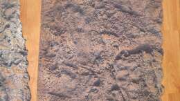 200 Kg feiner Filtersand (kantengerundet, gewaschen, feuergetrocknet und absolut frei von organischen Stoffen, pH-neutral, und erfüllt die DIN 19623 (alt), bzw. DIN EN 12904 (neu) zur Trinkwasseraufbereitung ) von 0, 3-0, 9 mm, damit die Sandfläche etwas natürlicher wirkt, wurden zus. noch 40 Kg Aquarienkies von 1-3 mm in hell/beige und 25 Kg 3, 15 - 5, 6 mm hell/beige untergemischt bzw. locker auf den Sand aufgestreut, ausserdem hat sich auch noch etwas Torf durch die selbst gesammelten Wurzeln mit eingeschlichen. Dies reicht dann insgesammt für eine Schicht von ca. 6 - 8 cm.