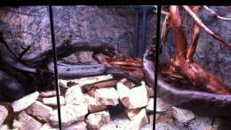 Anmerkung: Der schwarze Arowana ist jetzt ca. ein halbes Jahr alt, bei Einfuhr nach Deutschland war er ca. 12-14 cm gross, das bedeutet, dass er seitdem nur um ca. 6-8cm gewachsen ist, ein silberner Arowana hätte in der Zeit wenigstens schon seine 40-50cm Länge gehabt. Es handelt sich beim schwarzen Arowana also um eine nicht ganz so schnell wachsende Art. Auf Grund dieser Tatsache wurde auch ein schwarzer Arowana ausgewählt, ausserdem werden diese Tiere lange nicht so "bullig" von der Form her.