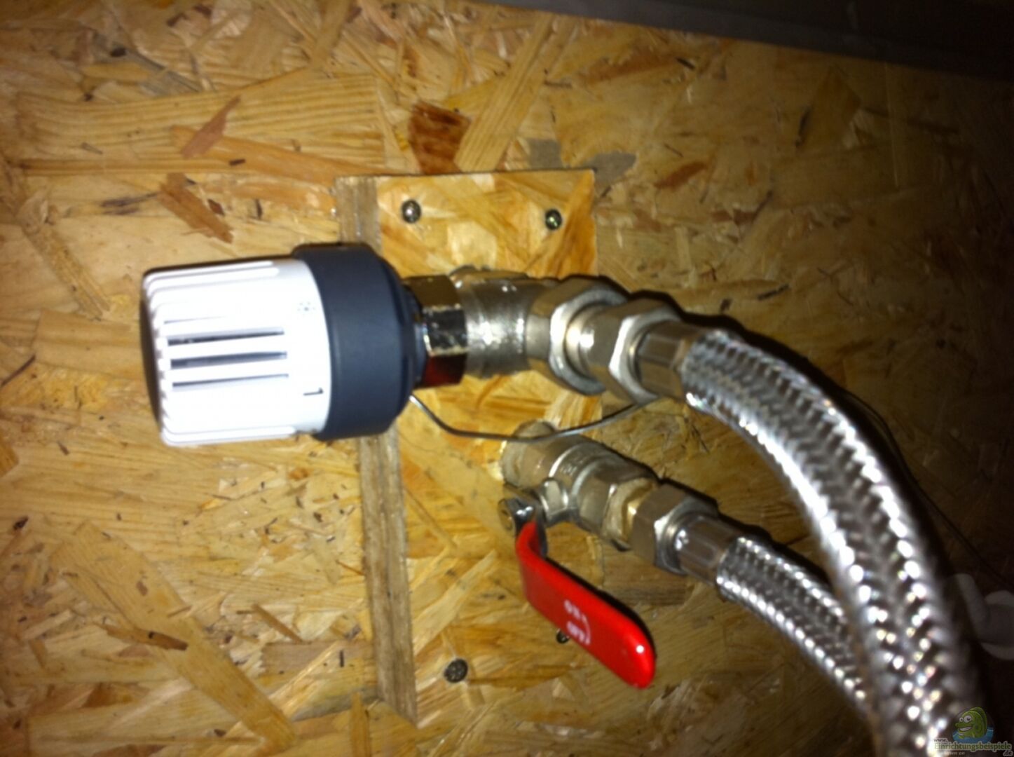 Das Aquarium: Das Becken ist von seinen Ma??en und seiner Form komplett selbst geplant. Es wurde von meinem Bruder Oliver und mir selbst vor Ort verklebt, die Glasstärke beträgt 12 mm (reicht für eine Höhe von 75 cm, ca. 14, 7 qm Float-Glas), dank der sehr sauberen Schnittkanten musste das Glas nicht geschliffen werden, die Kanten wurden mit einem Schleifschwamm nur leicht gebrochen. Es ist mit schwarzem Silikon auf Stoss verklebt, die Schräge vorne ist wulstverklebt, innen hat es rundherum dann noch eine Sicherheitsnaht (14 mm breit) bekommen. Die Bodenplatte besteht komplett aus geteilten Glasscheiben, welche mit Glasstreifen (Rippen, 100 mm breit) aus 12 mm Float-Glas überlappt wurden. Diese laufen dann unten komplett an den Seitenscheiben entlang, der Boden ist deshalb auf 24 mm Breite mit den Seitenscheiben verklebt. Auch dort wurde überall Sicherheitsnähte gezogen. Es hat an beiden Enden jeweils einen Zu- und Ablauf für einen Druckfilter, ausserdem gibt es noch 2 Rohre in der der hinteren Ecke, für den Zu- und Ablauf zu einem Biofilter, der auch als Druckfilter ausgeführt wird. Die Leitungen wurden komplett aus PVC-Druckrohr geklebt und durch Bohrungen (43 mm, alle selbst gebohrt) und Tankverschraubungen (32 mm) ins Becken geführt.