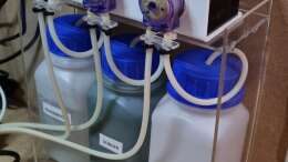 1x Reef Factory X3 3-fach Dosierpumpen mit JBL Ferropol und Vodka und etwas Zucker als Kohlenstoffquelle