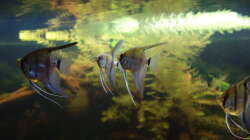 Mittlerweile ist noch ein zweiter Skalar gestorben, dem 4 übrigen gehts gut und sie wachsen sehr schnell. Ein Paar hat sich scheinbar fix zusammen getan und es wird regelmäßig abgelaicht. Junge haben aber durch die Salmler leider keine Chance.