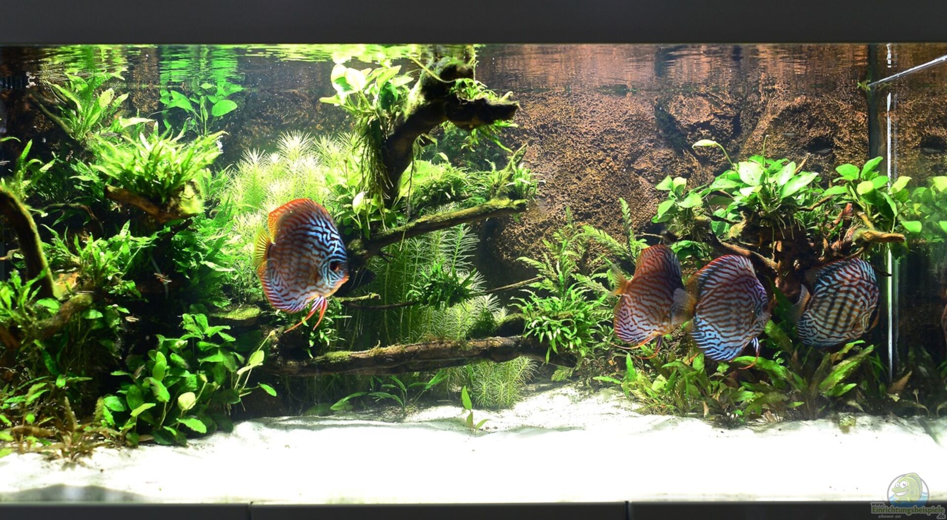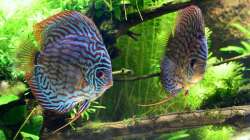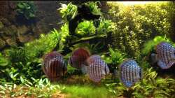 dies scheint wieder mal der Beweis zu sein, dass ein Diskusaquarium nicht unbedingt steril aussehen muss. Ich bin kein Diskusexperte, meine aber zu sehen, dass Deine Tiere absolut top dastehen, wirkliche Farbwunder, die sich in diesem Habitat wohlfühlen. Ob denen die optisch wirklich äu?erst ansprechende Gestaltung ebenso gefällt?