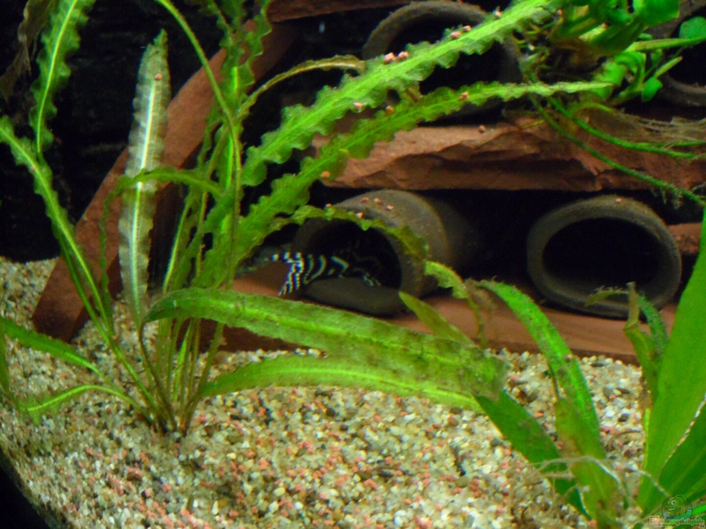 Breitblättriges Speerblatt (Anubias barteri) (klein) und Verschiedenblättriges Speerblatt (Anubias heterophylla) (gro??) im Aquarium.