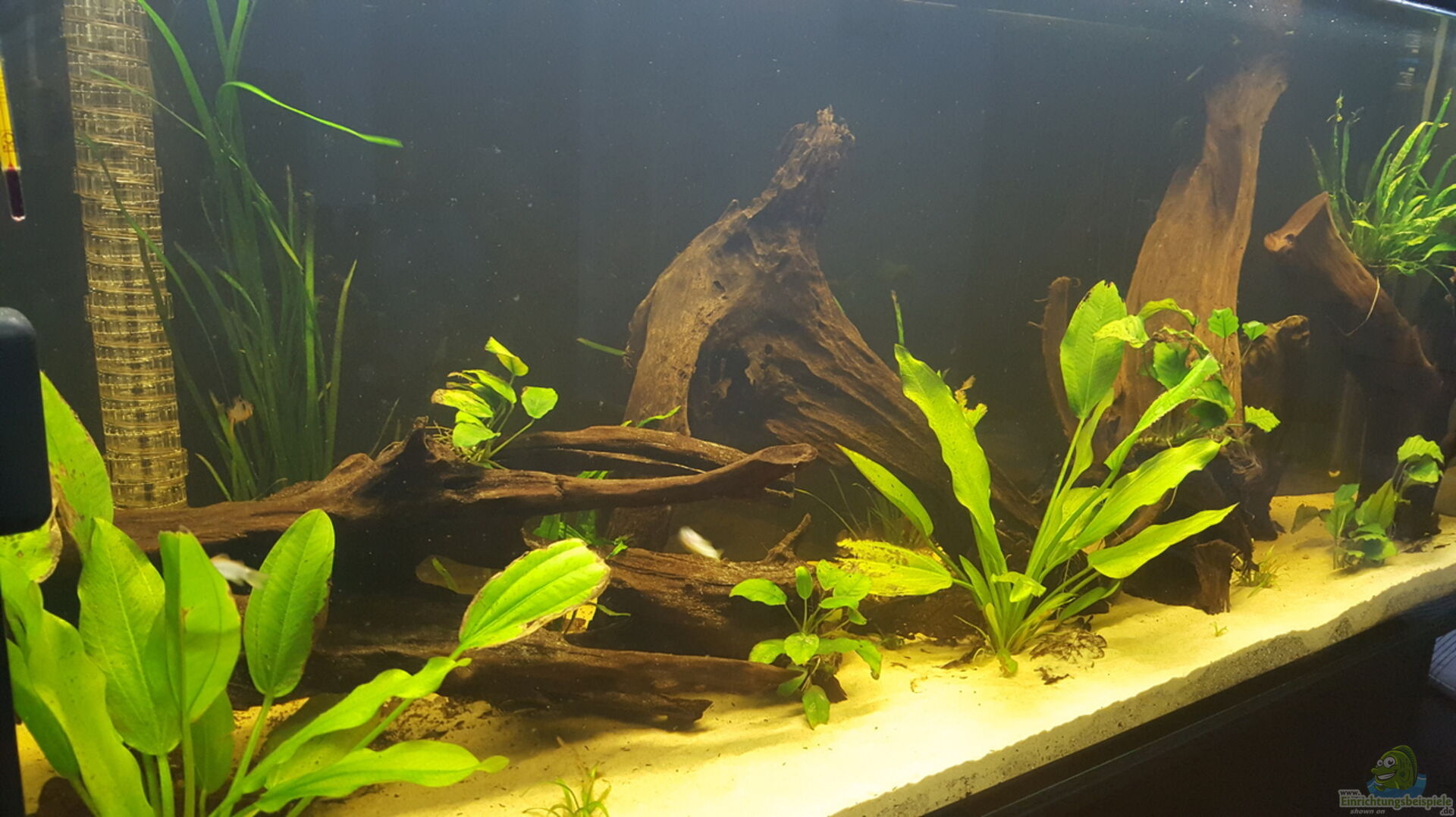 Als Hintergrund habe ich ein gro??es schwarzes Papierblatt hinter dem Aquarium angebracht. Diese soll nur noch "Dunkelheit ausstrahlen" indem davor die Wurzeln stehen und die Pflanzen dicht wachsen.
