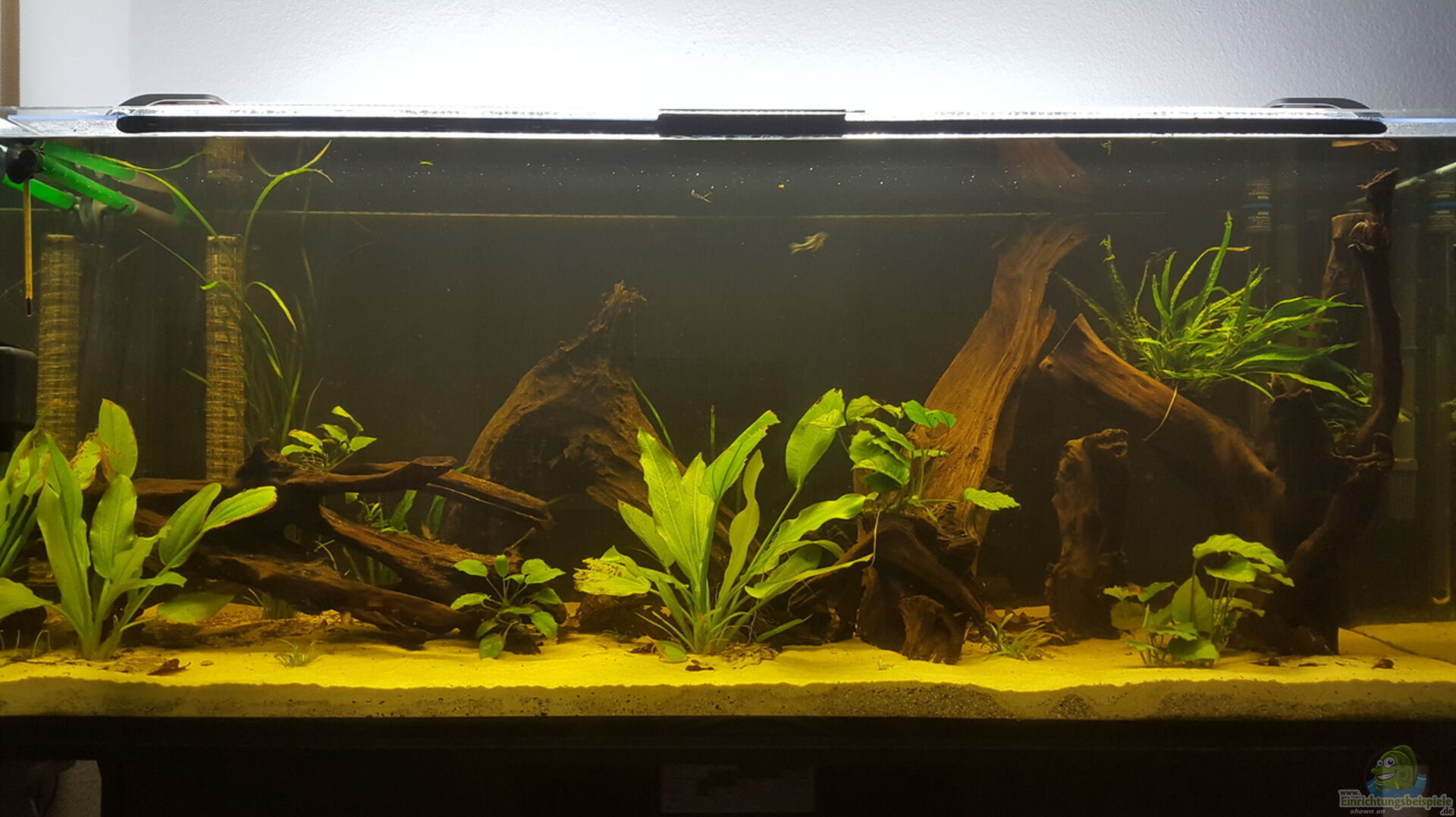 Da bis auf die Vallisnerien alle Pflanzen sehr langsam wachsend sind ist der Pflegeaufwand relativ gering gehalten. Die Vallisnerien müssen in Zukunft nur daran gehindert, dass sie sich nicht zu dominant im Becken verteilen.