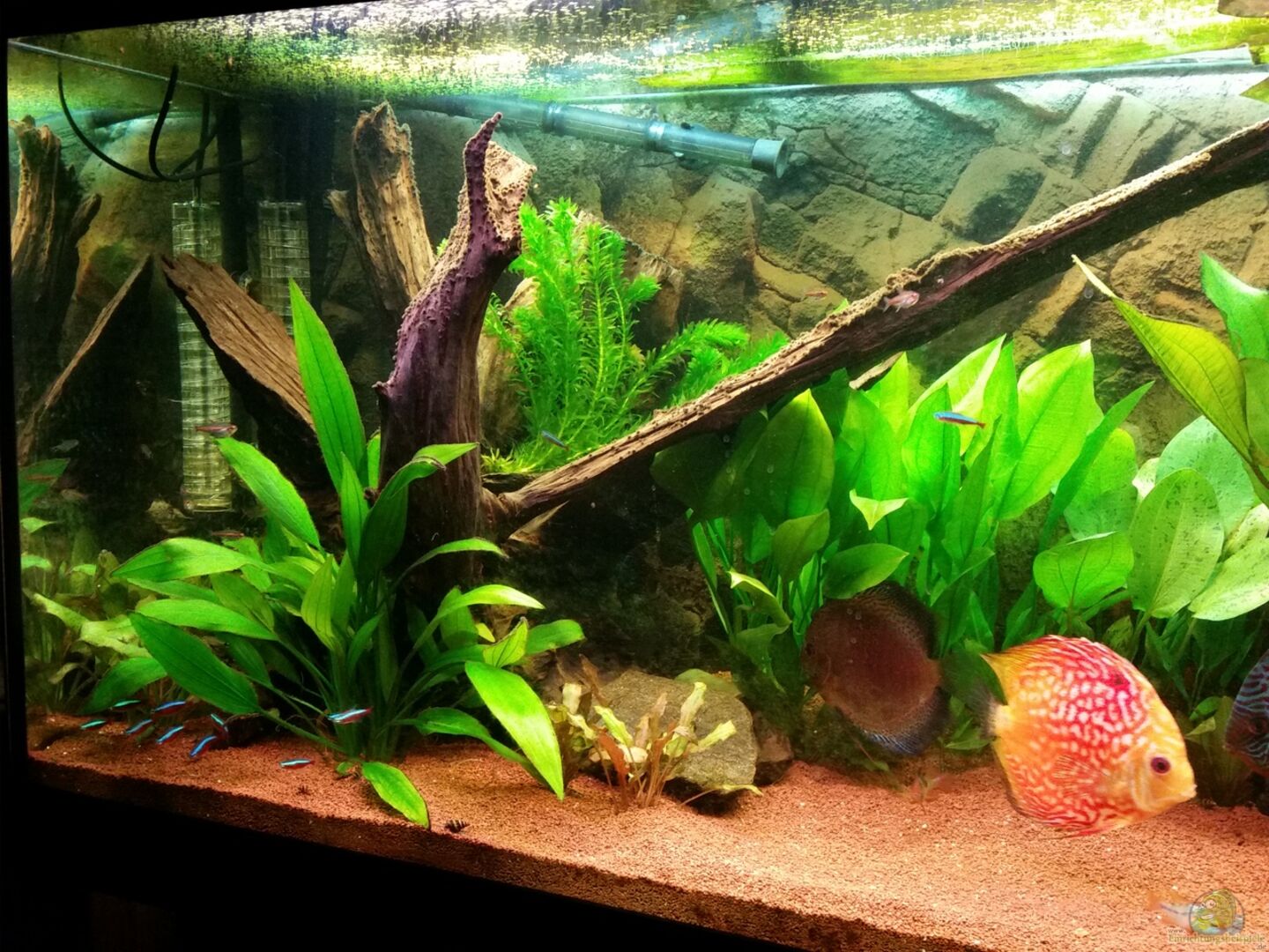 Wollte mit diesem Aquarium den natürlichen Lebensraum der Disken nachstellen!Darum wurde das Hauptaugenmerk auf diverse Verstecke und Unterstände für die Fische gelegt!
