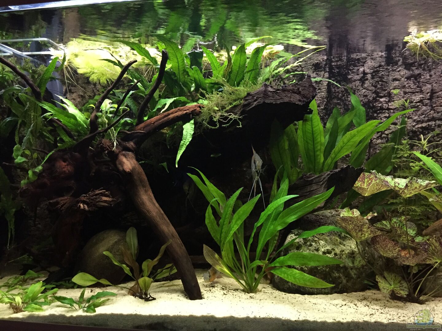 Bin momentan sehr zufrieden mit dem Becken. Mit der Haarnixe soll der Hintergrund noch etwas zuwuchern. LED Beleuchtung kann dank Dimmer angepasst oder reduziert werden, deshalb wenig Algenwuchs und stabile Wasserwerte.