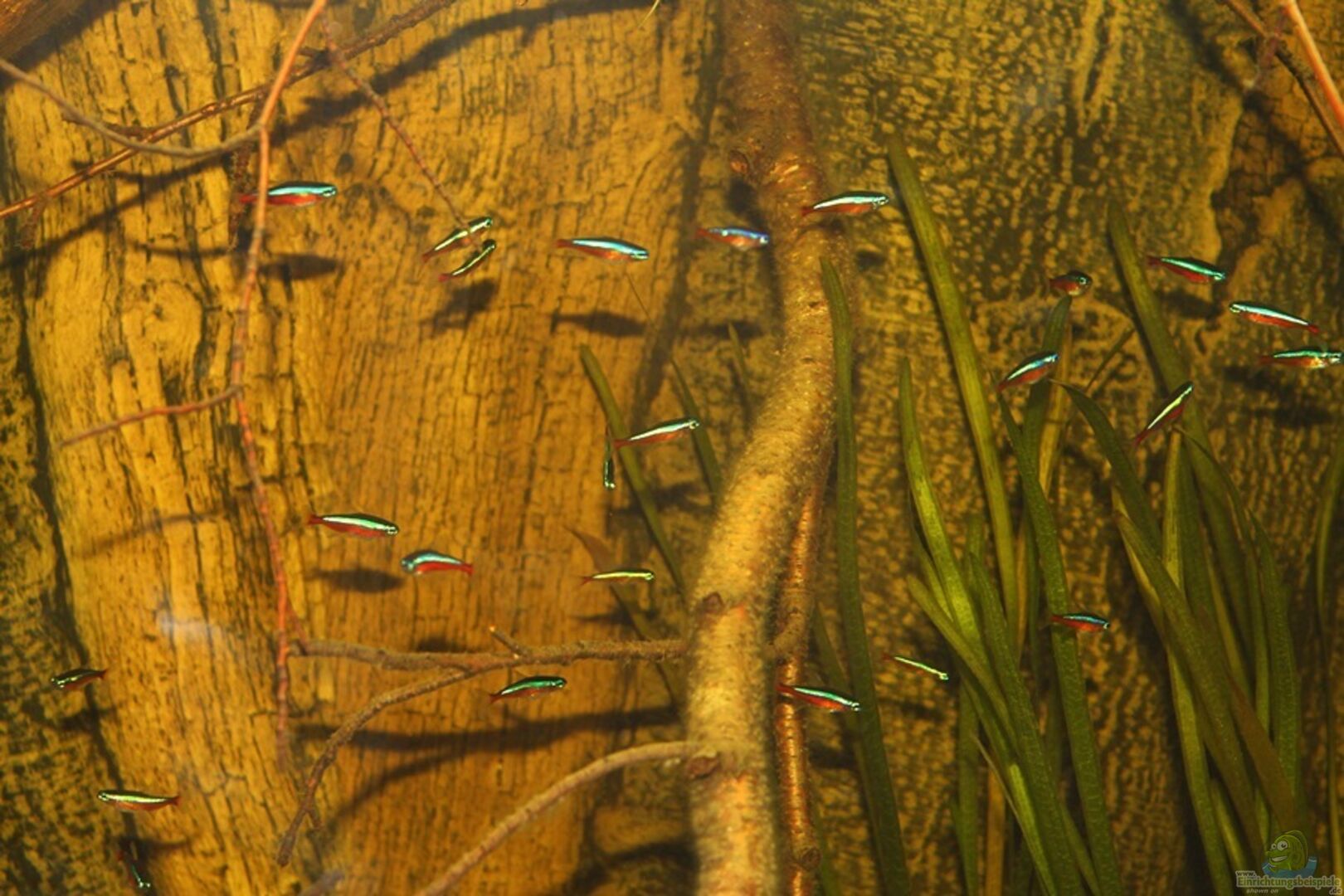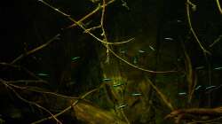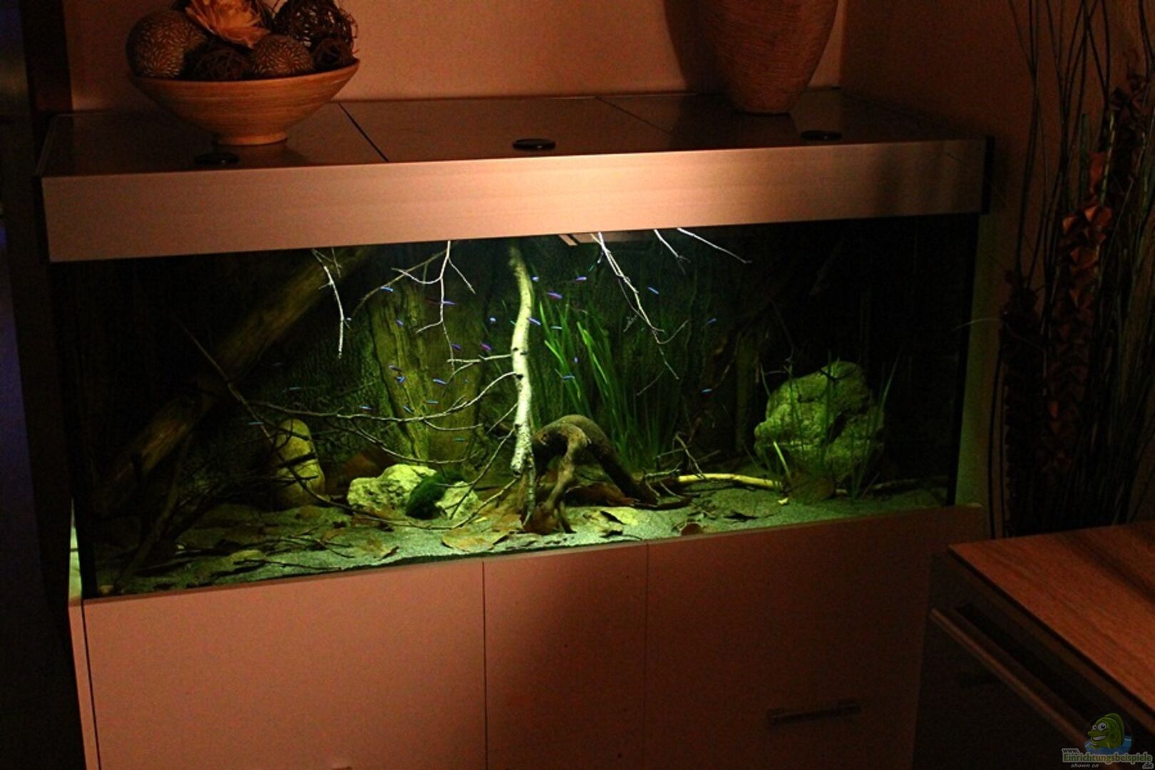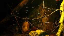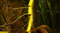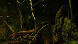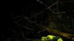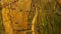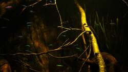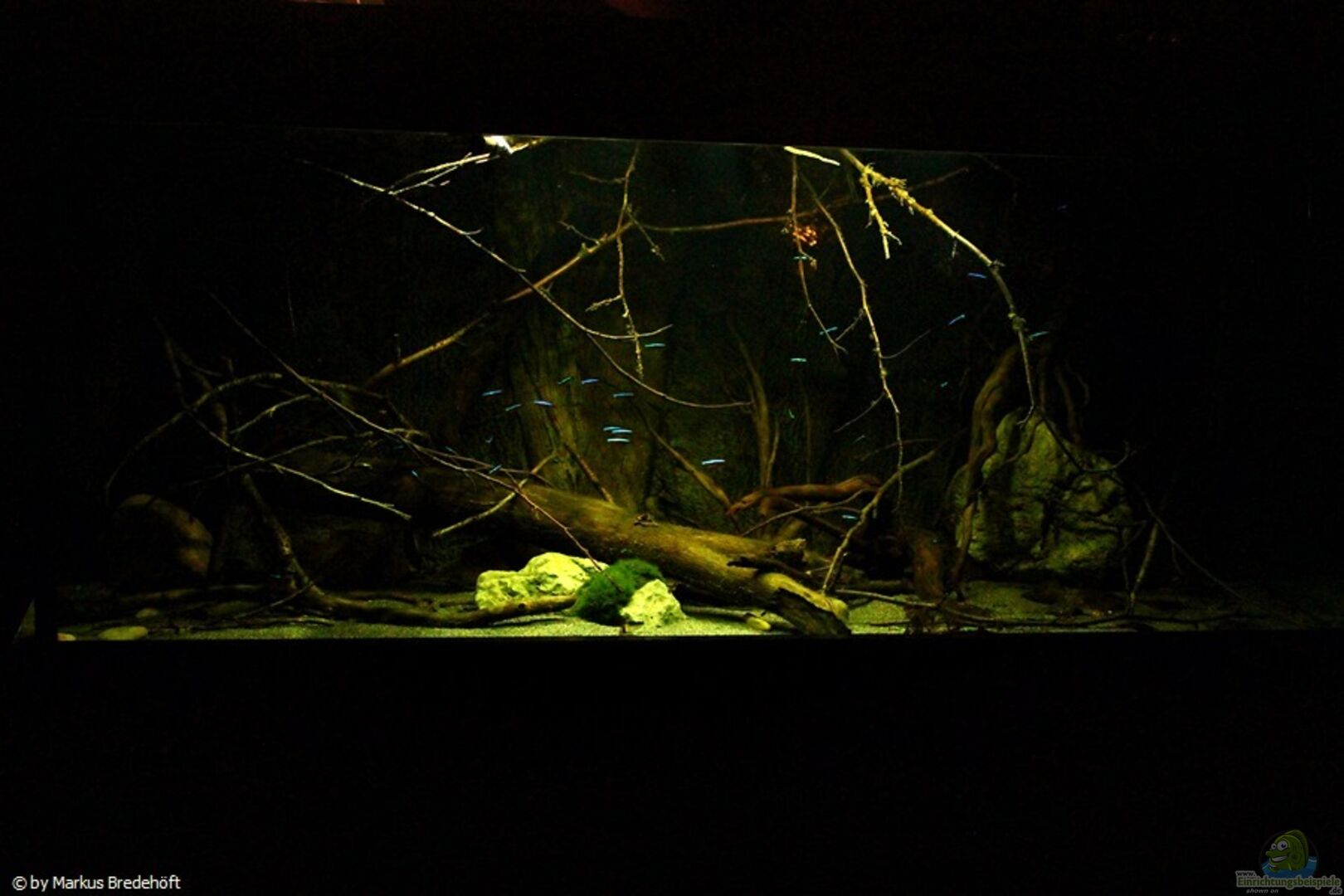 Gruppenfisch. Dunkel gehaltene Becken mit einigen ??sten und Pflanzen.