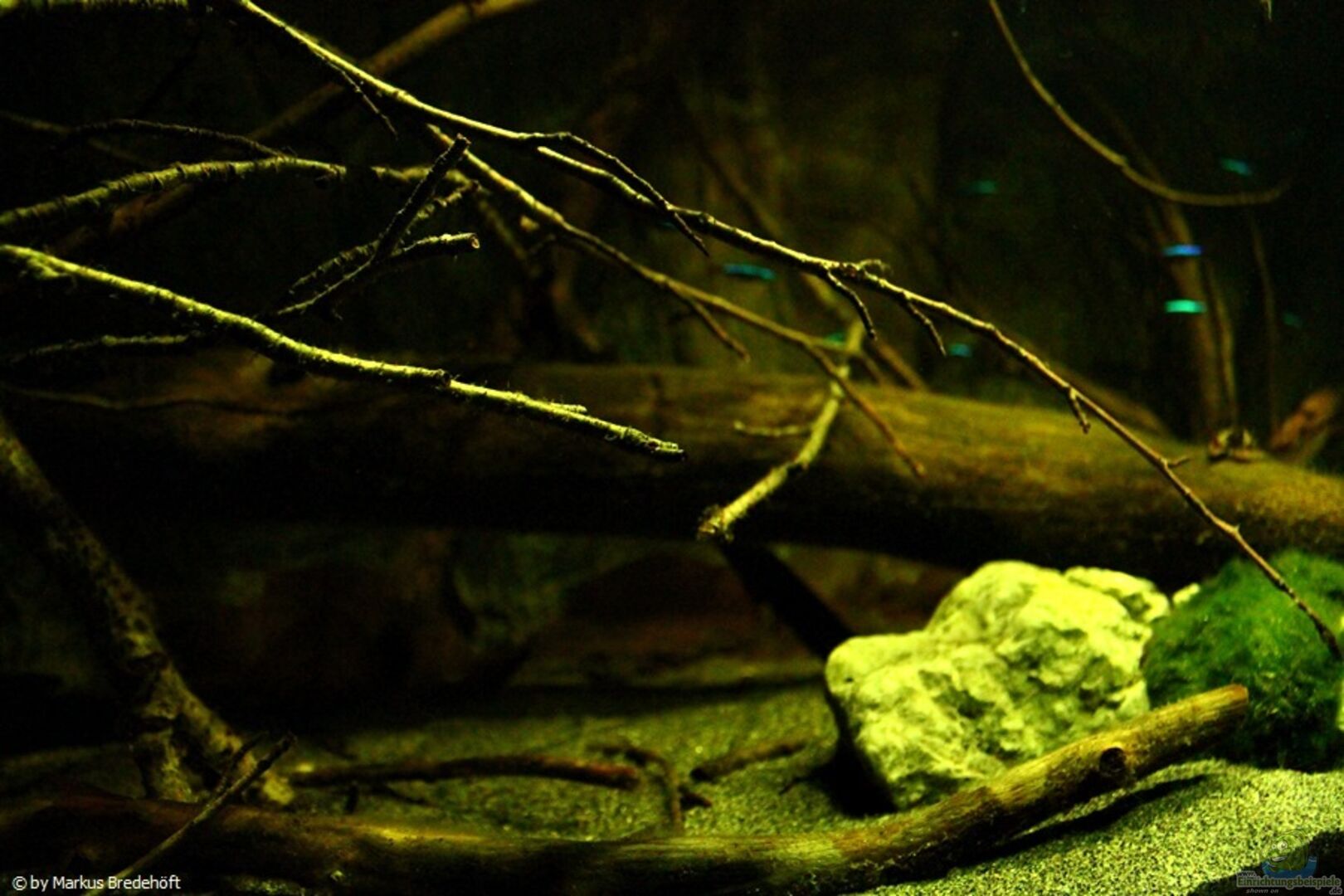Eingerichtet wurde das Becken mit diversen, trockenen Buchenästen und Holzstämmen sowie mit 3 ca. 30 - 40cm gro??e Moorkienwurzeln.