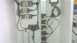 Wenn Gewittertag ist, wird dieses Wasser, von einem 75W Heizstab auf 25 Grad vorgewärmt, über eine Pumpe hochgepumpt. Unter den Abdeckplatten des Aquariums habe ich insgesamt 65 Gardena-Bewässerungstropfer angeklebt, über die das frische Osmosewasser ins Becken regnet. Jeder von ihnen schafft ca. 2l in der Stunde, so dass zusammen 130l Regen pro Stunde fallen. Ein Gewitter wird also etwa 20-25min dauern, bis der Vorratstank leer ist und die Regenpumpe über einen zweiten Niveausensor wieder abgeschaltet wird. Genau einstellen kann ich das aber erst, wenn das Aquarium in Betrieb ist und ich´s auch ausprobieren kann. In der rechten Klarwasserkammer befindet sich ein ??berlauf , so dass der Wasserspiegel die ganze Zeit konstant bleibt.