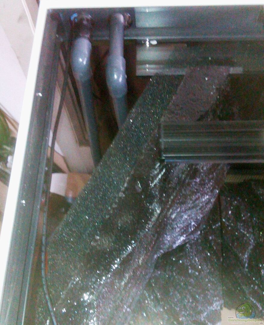 Das Ganze ist mit Aquariensilikon eingeklebt, damit insbesondere die Bodenelemente auch da bleiben, wo sie hingehören.