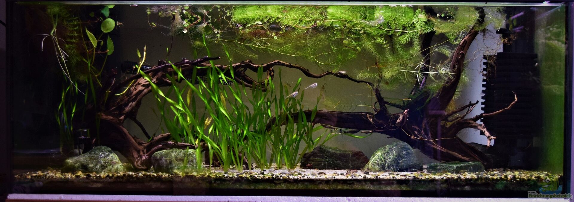 Ansonsten hab ich heute das Becken umgestellt, weniger Steine, dafür mehr Wurzeln im Hintergrund und im oberen Bereich wurde eine schöne bewachsene Wurzel entfernt, um mehr Platz und somit Tiefenwirkung zu erzielen.