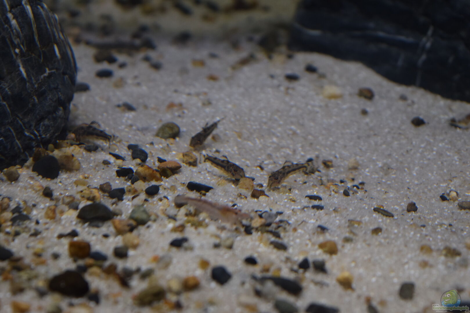 Für Aspidoras spilotus hab ich mich entschieden, weil dafür mein Becken ideal ist (starke Strömung, hoher Sauerstoffgehalt, Sandboden, sehr weiches Wasser) und sie definitiv agiler sind als Corydoras habrosus, die ich vorher eingeplant hatte. Die aktuelle Grösse beträgt 2 cm. Ausgewachsen sind sie mit 5 cm, also doch noch recht klein.