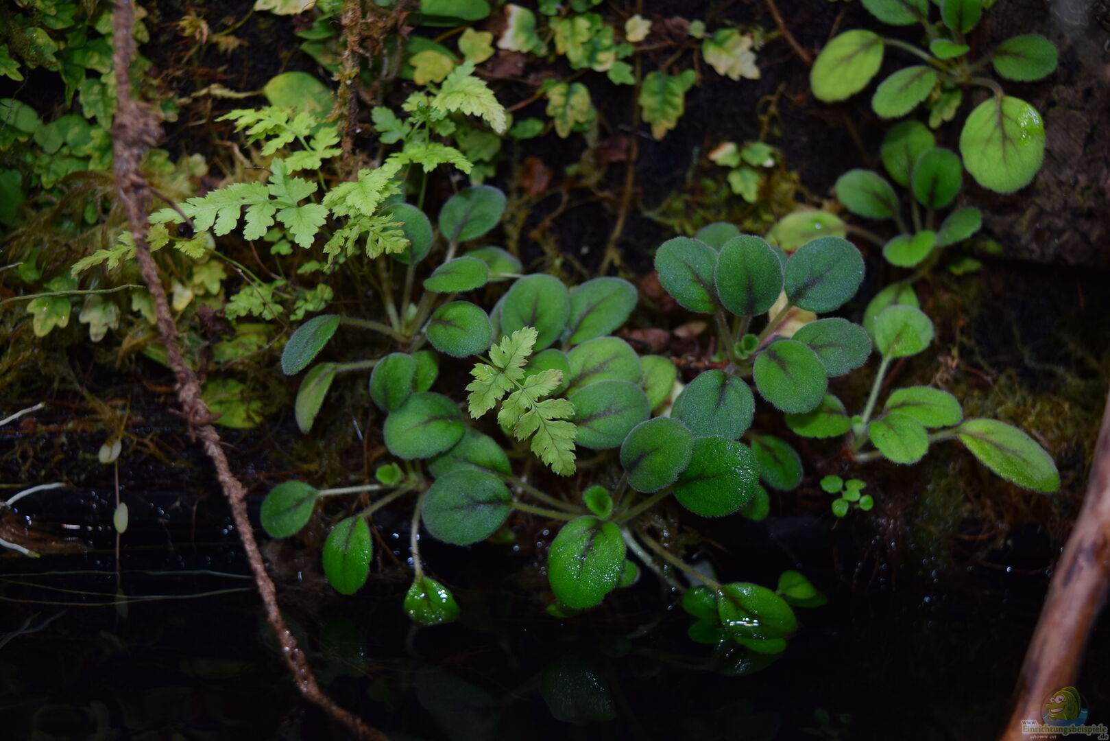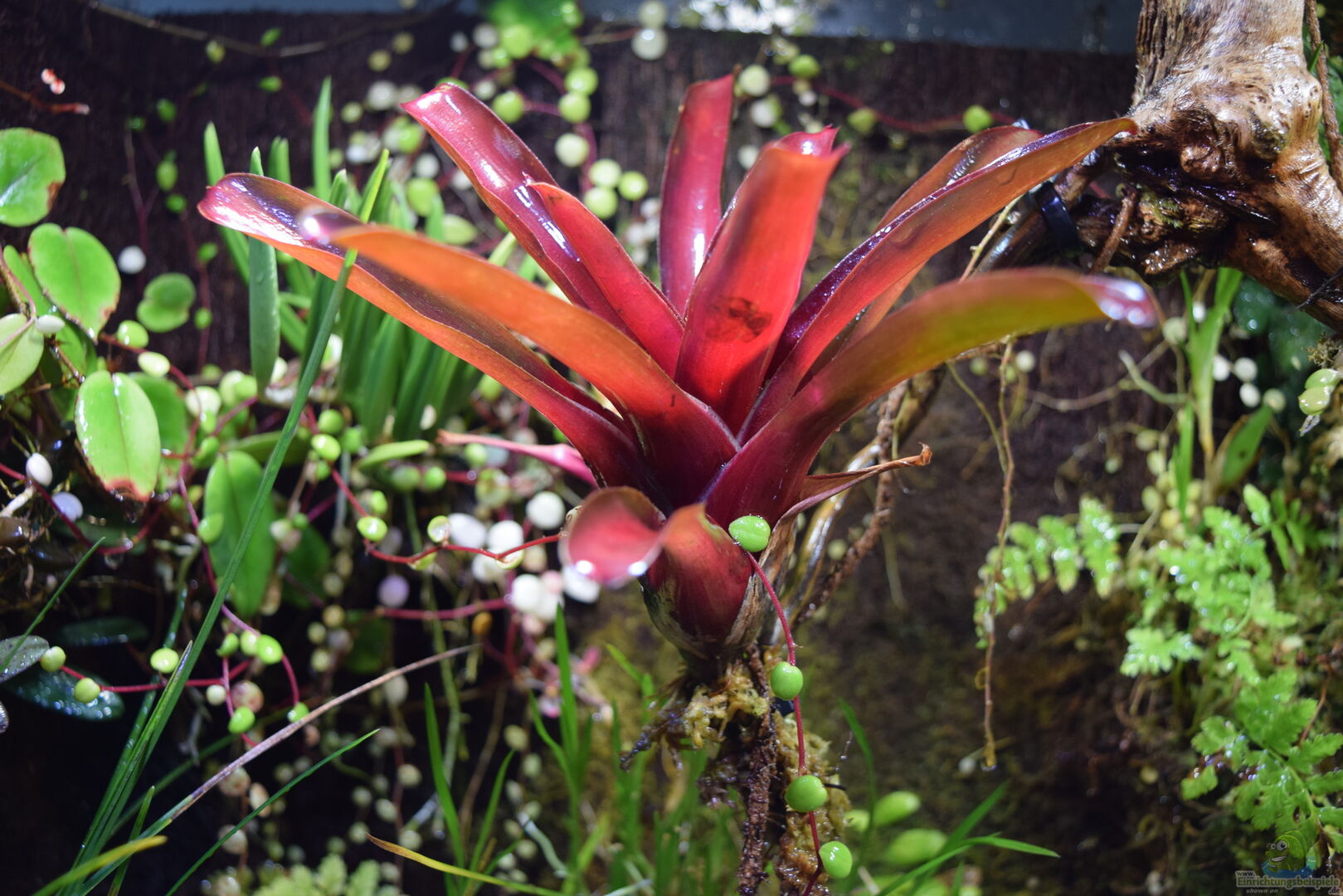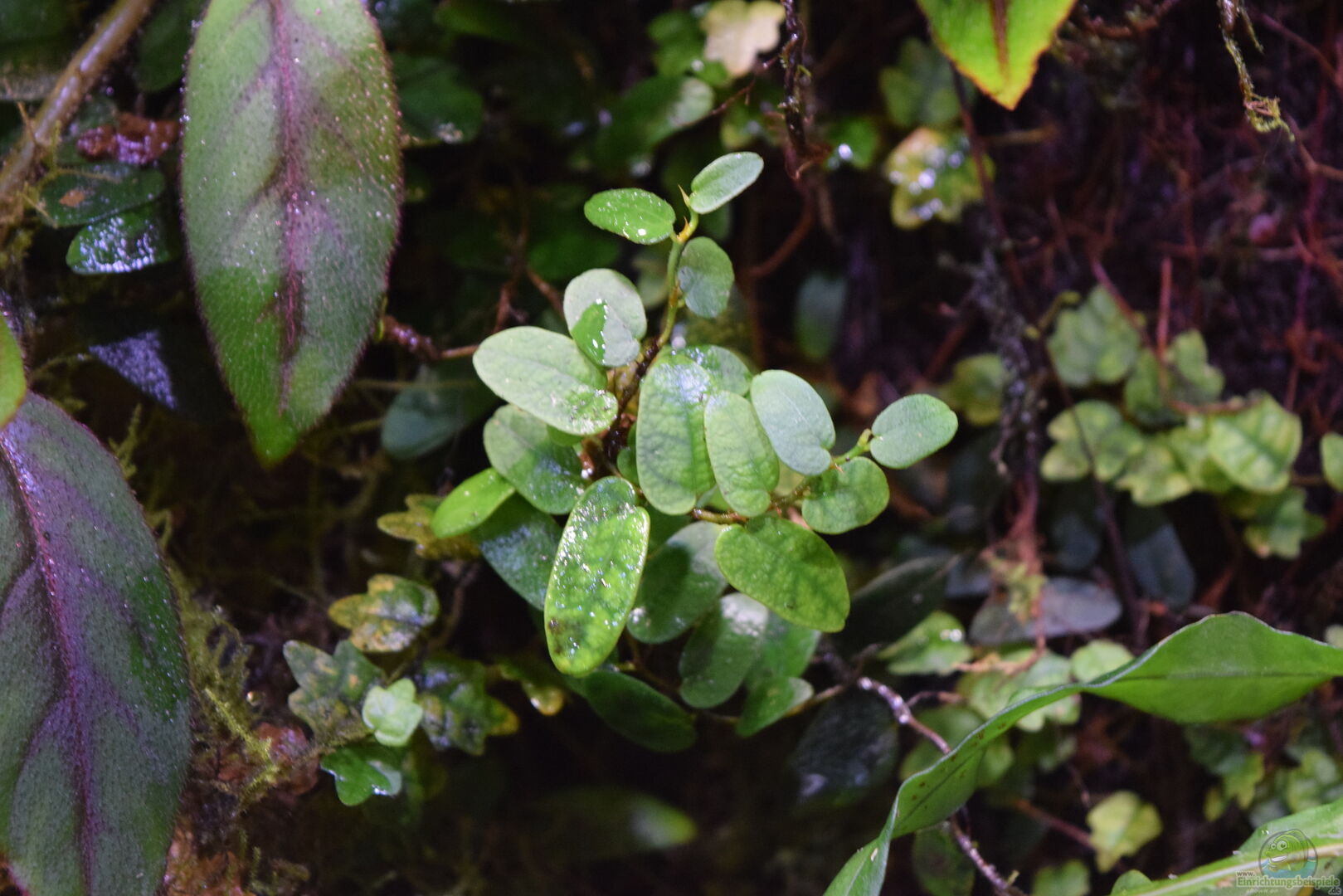 Neoregelia green pointet, Neoregelia schultesiana purple red, Epidendrum Porpax, Dischidia hirsuta, Microgramma reptans, Peperomia rostrata, Epidendrum cochleatum, , Gomesa radicans, Dendrobium wassellii, Barbosella cogniauxiana, Sphagnum-Moos, Ficus quercifolia, Restrepia trichoglossa, Stelis sp., Peperomia hoffmanii, Pyrosia nummularifolia, Campyloneurum angustifolium, Pyrrosia lanceolata